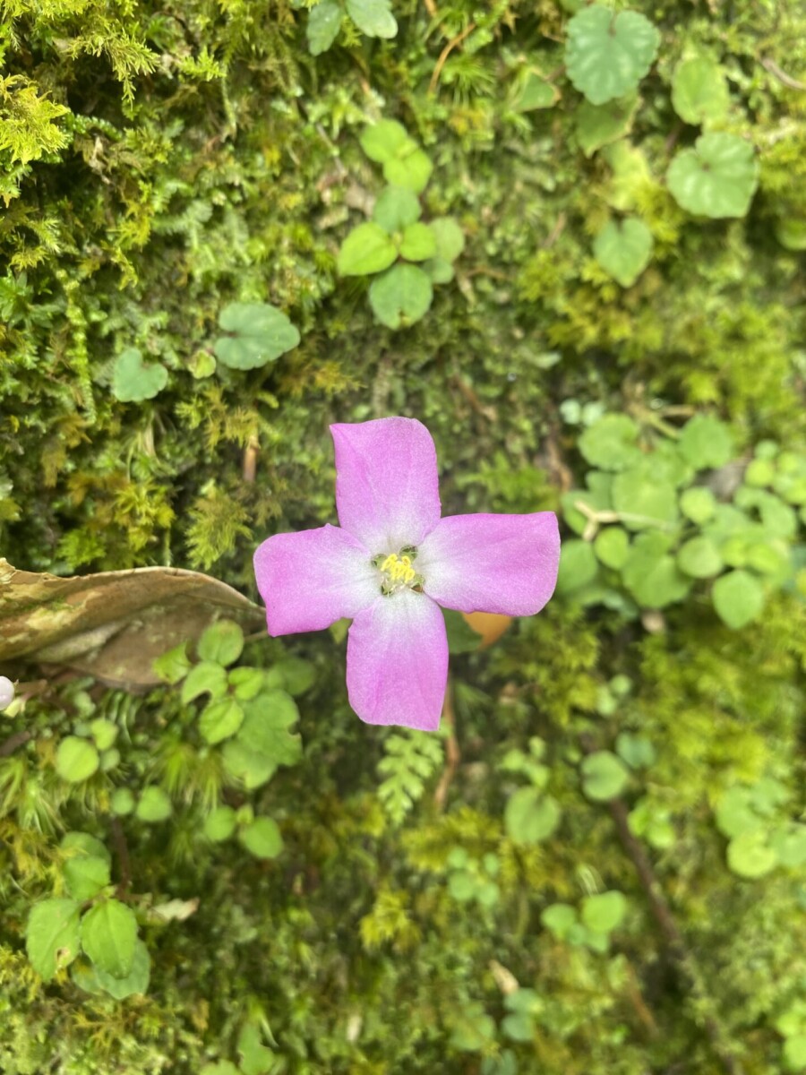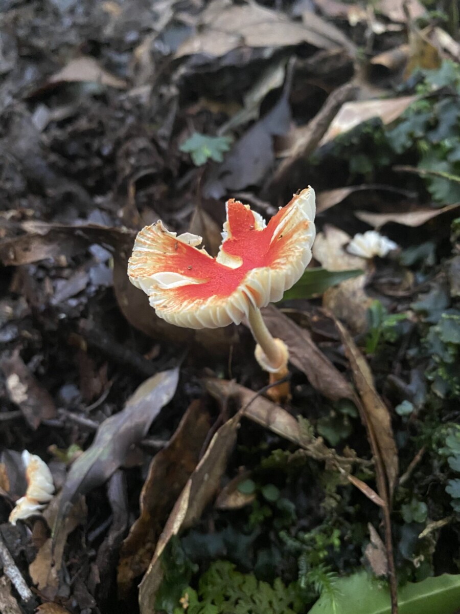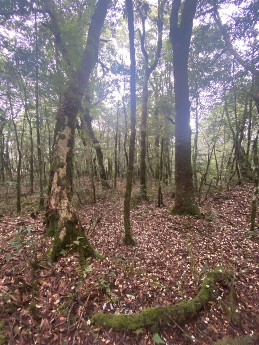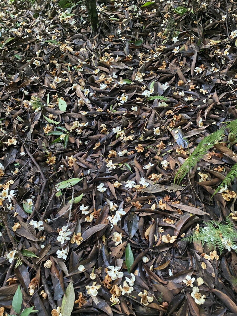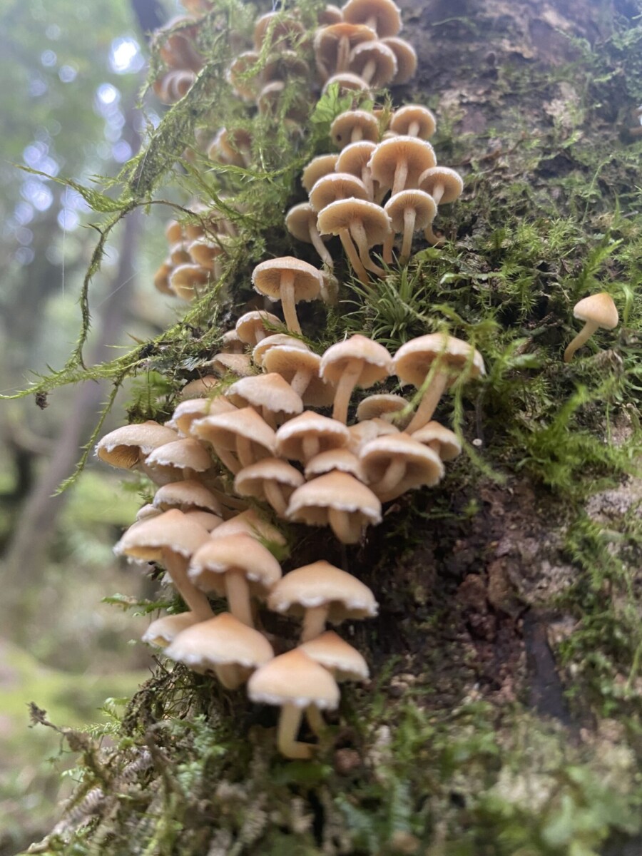 我又想到在攀上復興尖山前碰到的那一場大雨,樹冠hold不住了往樹幹流,樹幹hold不住了就像小瀑布般往地上直接奔瀉。我知道那些樹是認真在蒐集雨的,然後讓它們流往根處,那麼泥土裏的根和好朋友真菌也會幫忙吸收起來,往上送到樹冠,再蒸散為雲霧,然後在午後再回收為雨水,成就一個良善的循環。在那個當下,太感動了,我不禁伸出雙手去接,第一次嚐到了台灣森林新鮮的水。我想,大家既然已經相互交換了細菌,算是我中有你你中有我,是發自肺俯的真心好朋友了吧!
