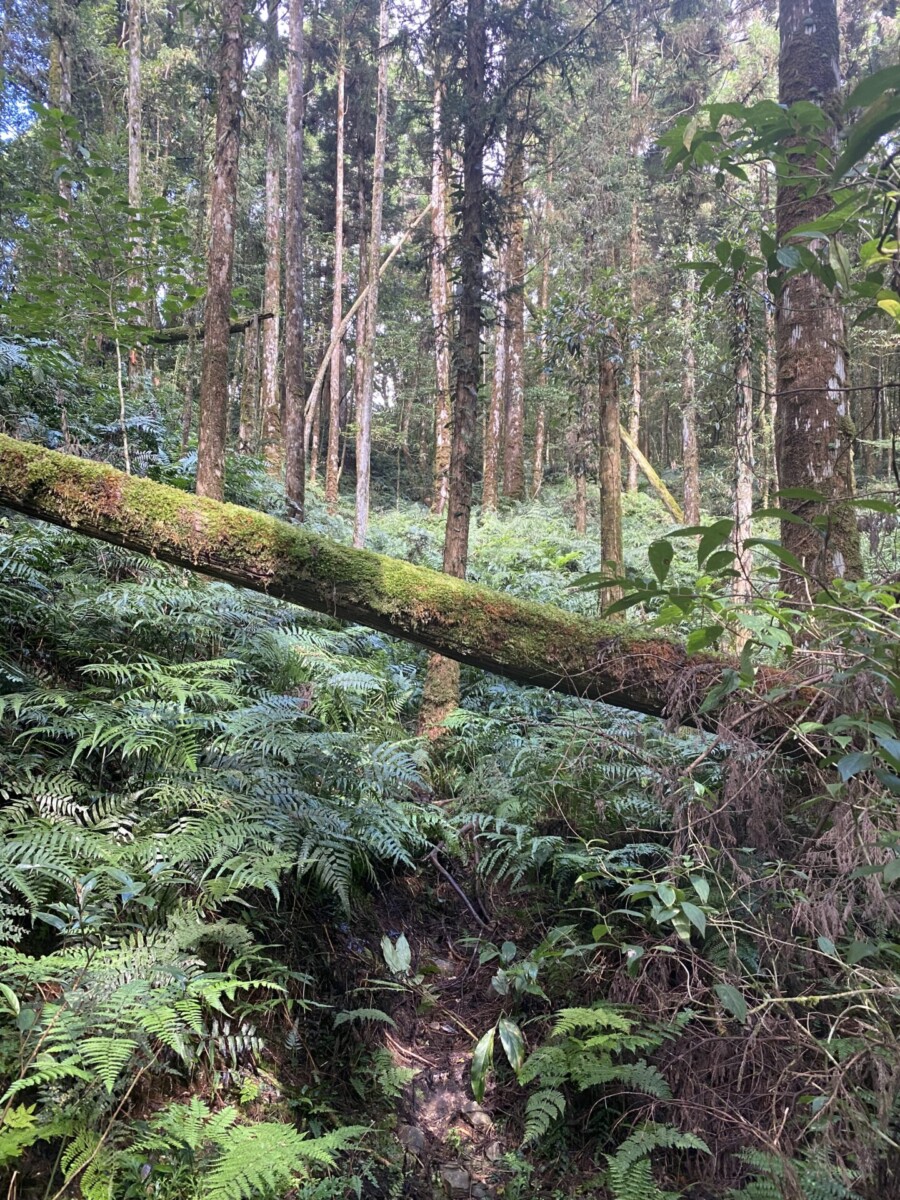 芃芃山的山徑,在前段有幾處因為倒木模糊了路跡,那是不管上山或下山,摸黑都會迷路的地方,還好我下芃芃山都還不到中午12點呢!