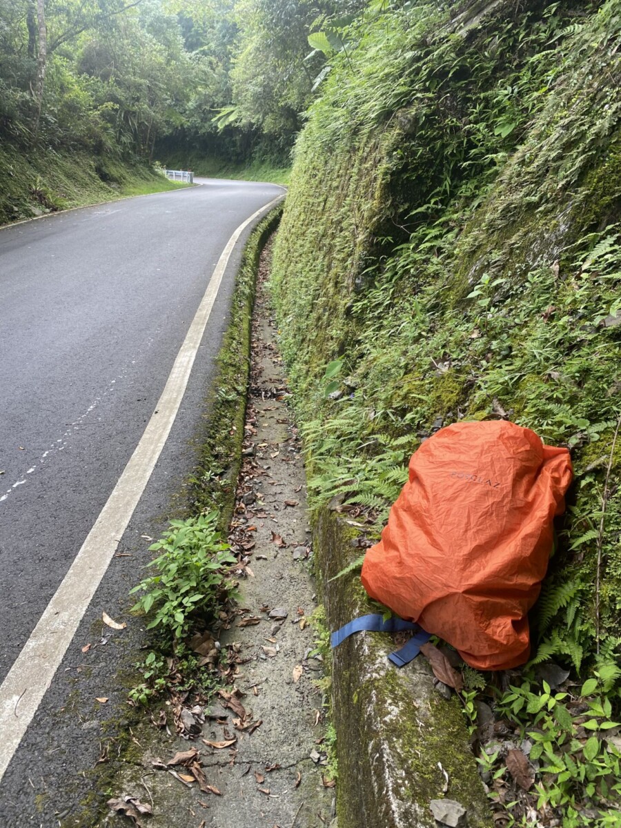我把束在脖子上的頭燈拿下,改拿在手上,思考著等一會兒如果有車經過,才不會不自覺把戴在身上的燈照進好心人的眼睛裏。我會誠懇地要求對方讓我搭段便車,噢!不是要求,而是懇求。背包放到他的行李廂,並且會答應先把雨衣、雨褲脫掉再上車…..且慢!我上身是溼的,或許可以不靠在椅背上,但是屁股呢?我不確定是不是還是乾的。我又想,如弄髒了,就告訴他清潔的費用我會出,留下連絡方式,然後他可能會阿莎力地說沒有關係……台灣最美的風景嘛!