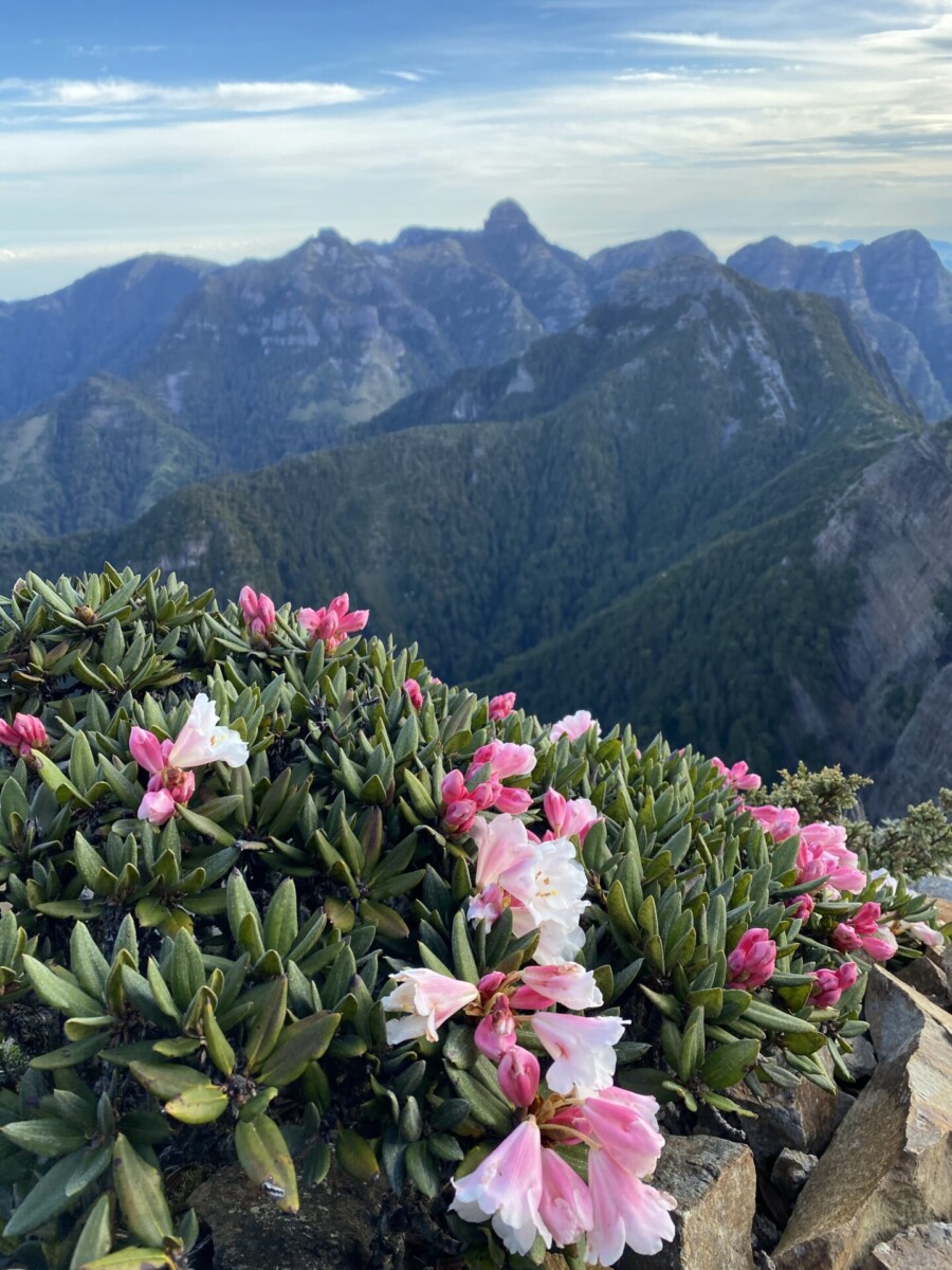 站在雪山的主稜,台灣島上其中一個主要的屋脊,感受這在地球上「才」二百萬年的「年輕」土地所呈現的無敵美景,其實背後對生物是相對艱困的環境。箭竹、台灣馬醉木、玉山/台灣高山杜鵑/紅毛杜鵑、冷杉、台灣鐵杉、貓頭鷹、山羌、水鹿、紅鬃山羊、黃喉貂、黃鼠狼等等,都堅強地活著。這也算是一種台灣精神吧!因為缺乏,所以只有努力才可以繼續好好活著。