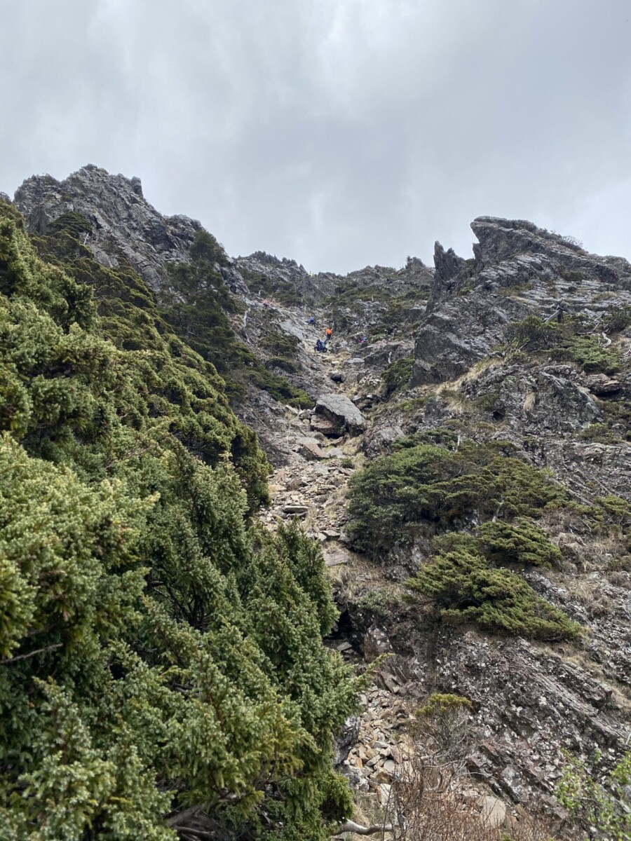 因為實在走得太慢了,年輕小子的高中同學受不了,逕自往下走,一直到了陡斜約莫底部的地方才停下來等。只剩下我,陪年輕小子一步一步地走。