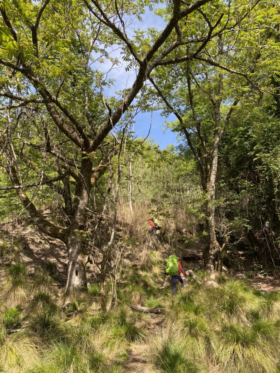 我們在耳無溪各揹了6公升的水,重裝爬升到遠多志山之前海拔2,605公尺的森林松針迷你營地,才約莫中午時分,但考慮到隊友的體力,就決定先紥營休息了。
