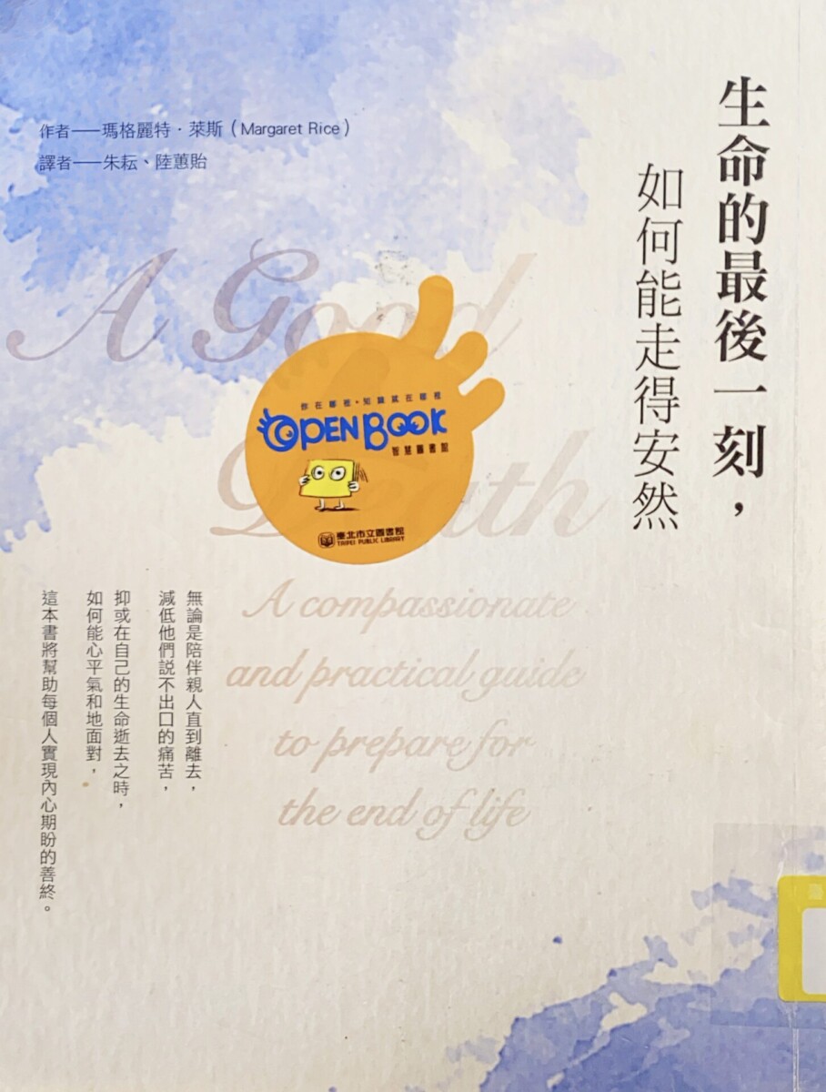 *:《生命的最後一刻,如何能走得安然》,瑪格麗特·萊斯(Margaret Rice)著,朱耘 陸蕙貽 譯