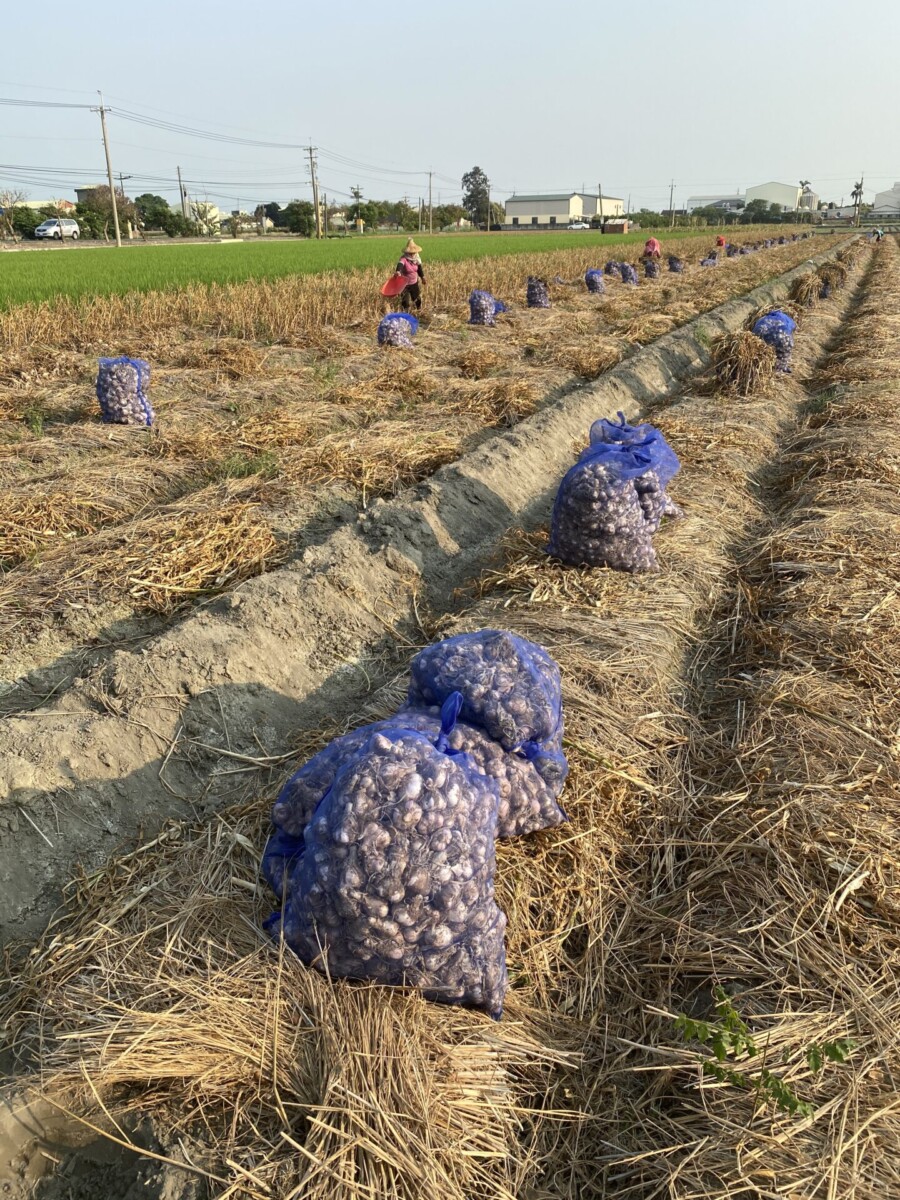 老農說這一期當時下種的時候,蒜種的價格飆高了好幾倍,成本是更高的了。但從口氣之中,感到某種賺錢不欲人知的謙抑,「啊夠欸賽」(還可以啦)道盡了他心中的歡喜。
