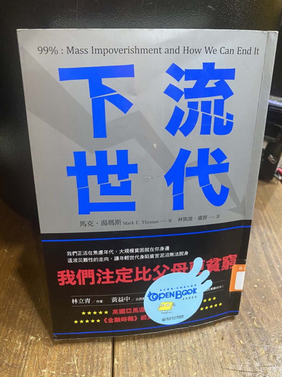 台灣的經濟形態,往往以老美馬首是瞻。馬克·湯瑪斯研究美國社會,警告未來若繼續富者愈富、貧者愈貧,美國很多的年輕人非常可能變成下流的世代,過著非常貧窮的生活。足可作為台灣的警惕。