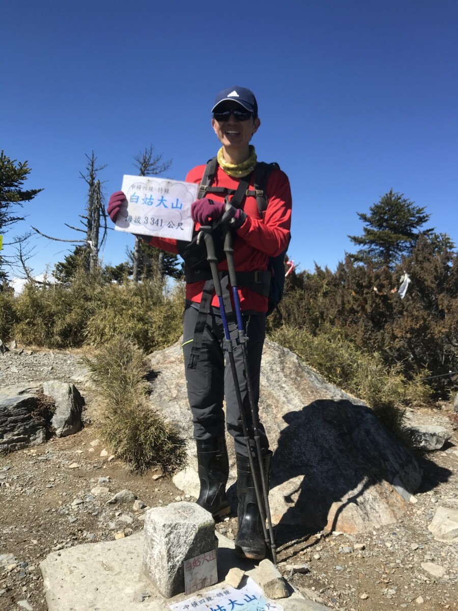 從海拔約2,800公尺的吉他營地續走,就幾乎是一路上坡,走2.1公里直到白姑大山3,341公尺的峯頂了。