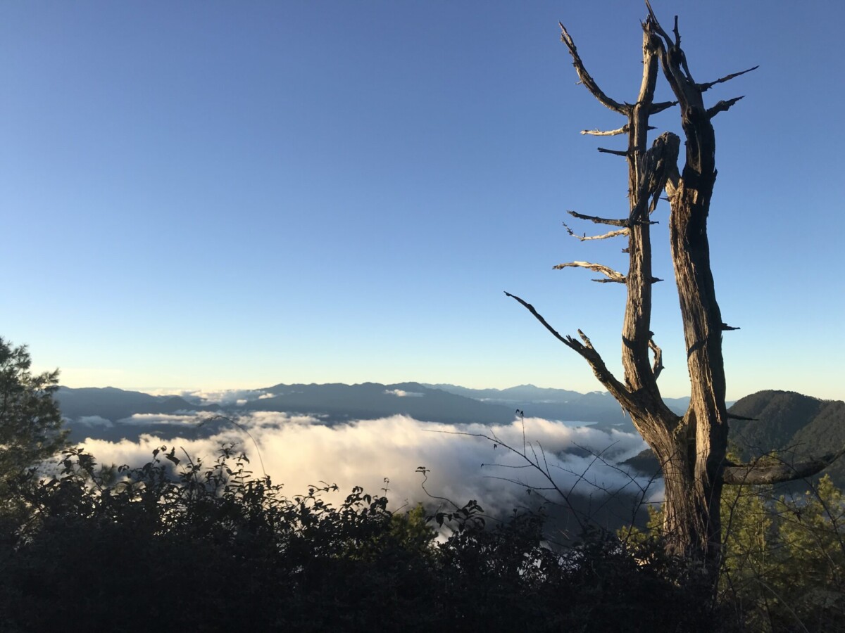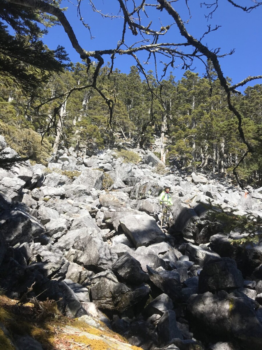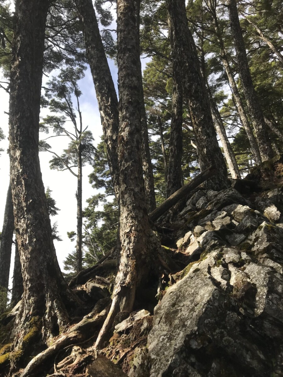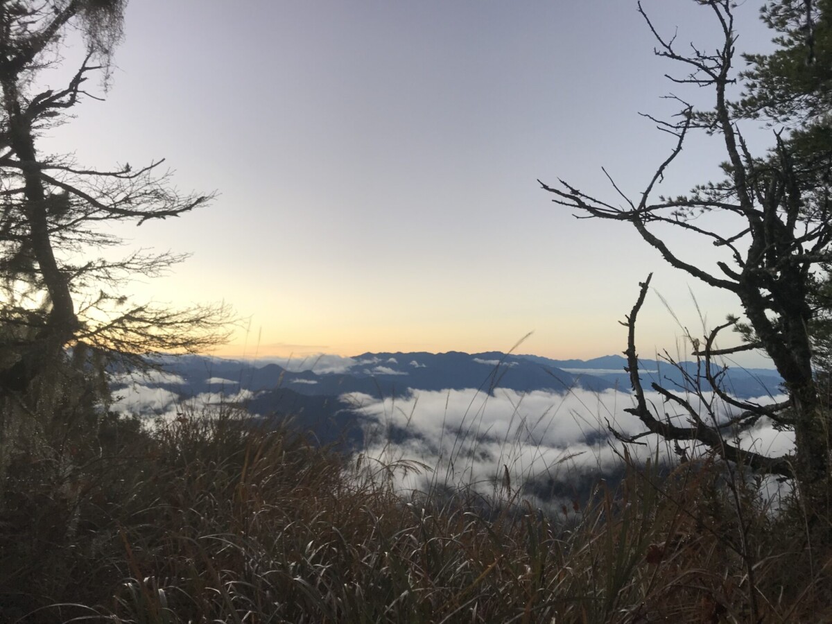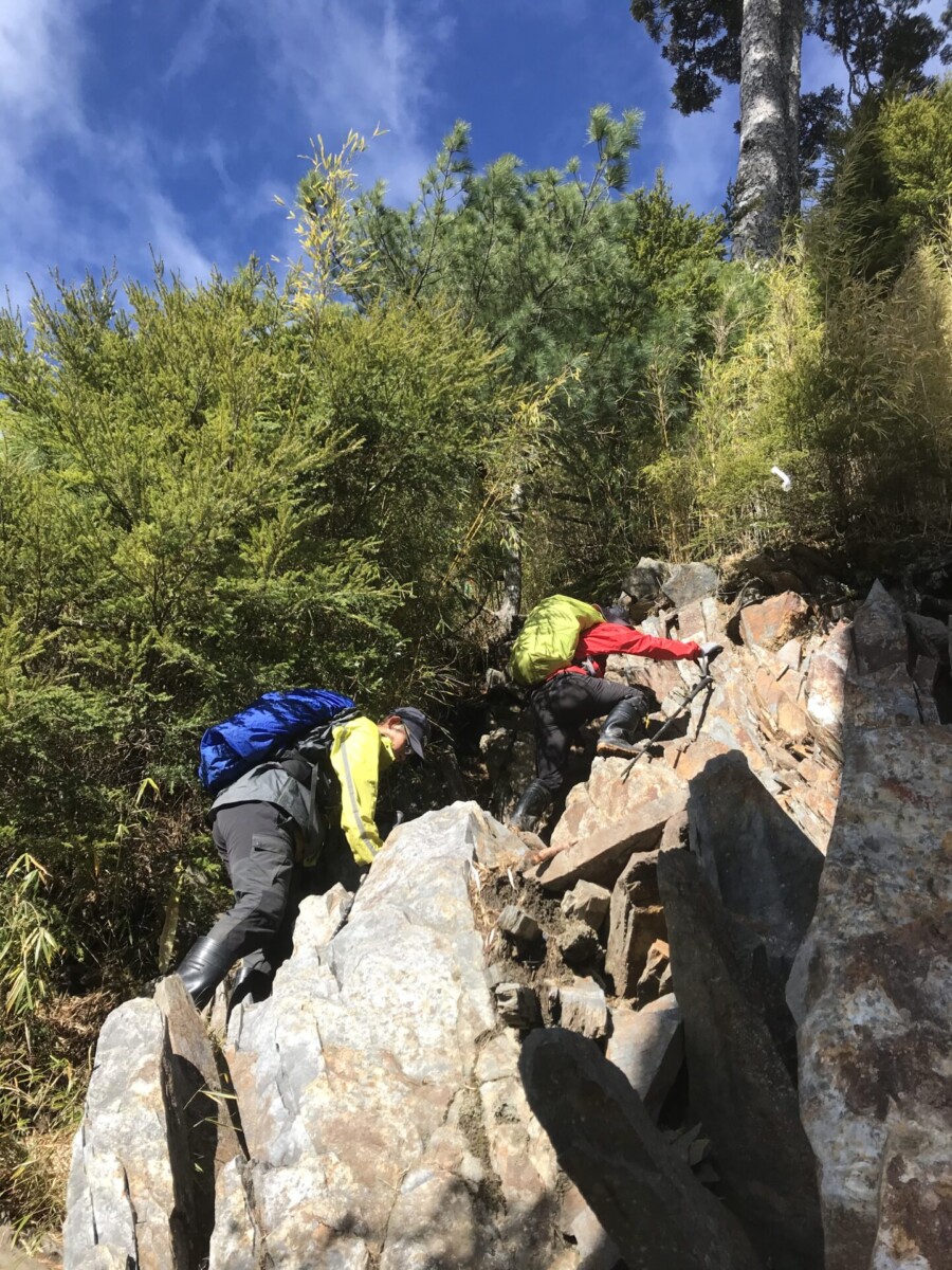首先從海拔約2,000公尺的登山口,走3公里,爬上2,570公尺的三錐山。