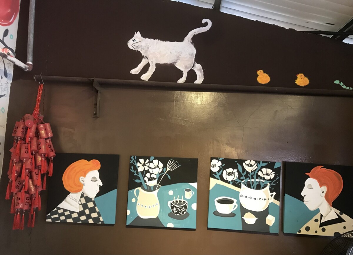 老闆娘的女兒念的是美術,店裏的壁畫和牆上掛的油畫,都是女兒贊助的作品。