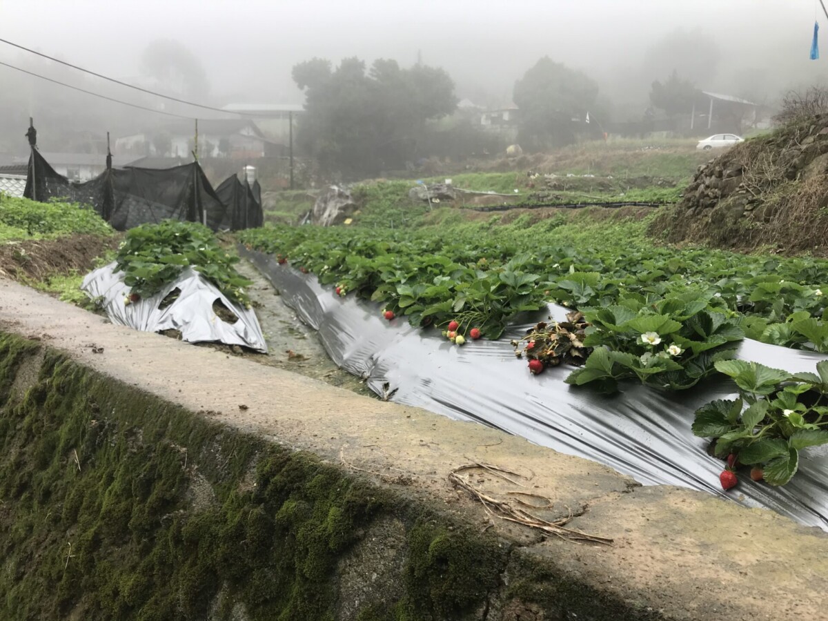 大湖的草莓看起來收成應該不錯,有不少果農改用高架的盆栽法,客戶採果也比較乾淨方便,但是肥土及相關的人工的成本應該是比較高吧!