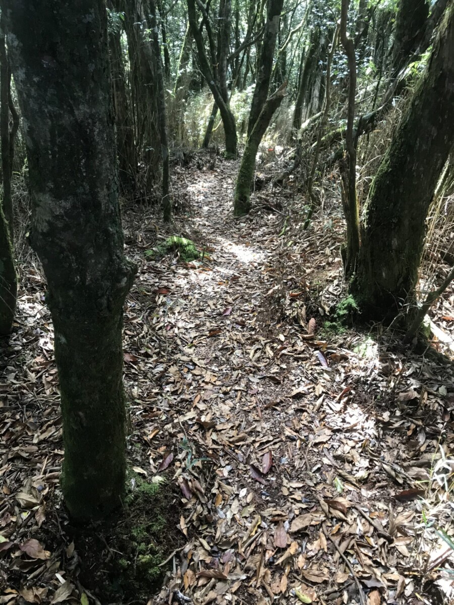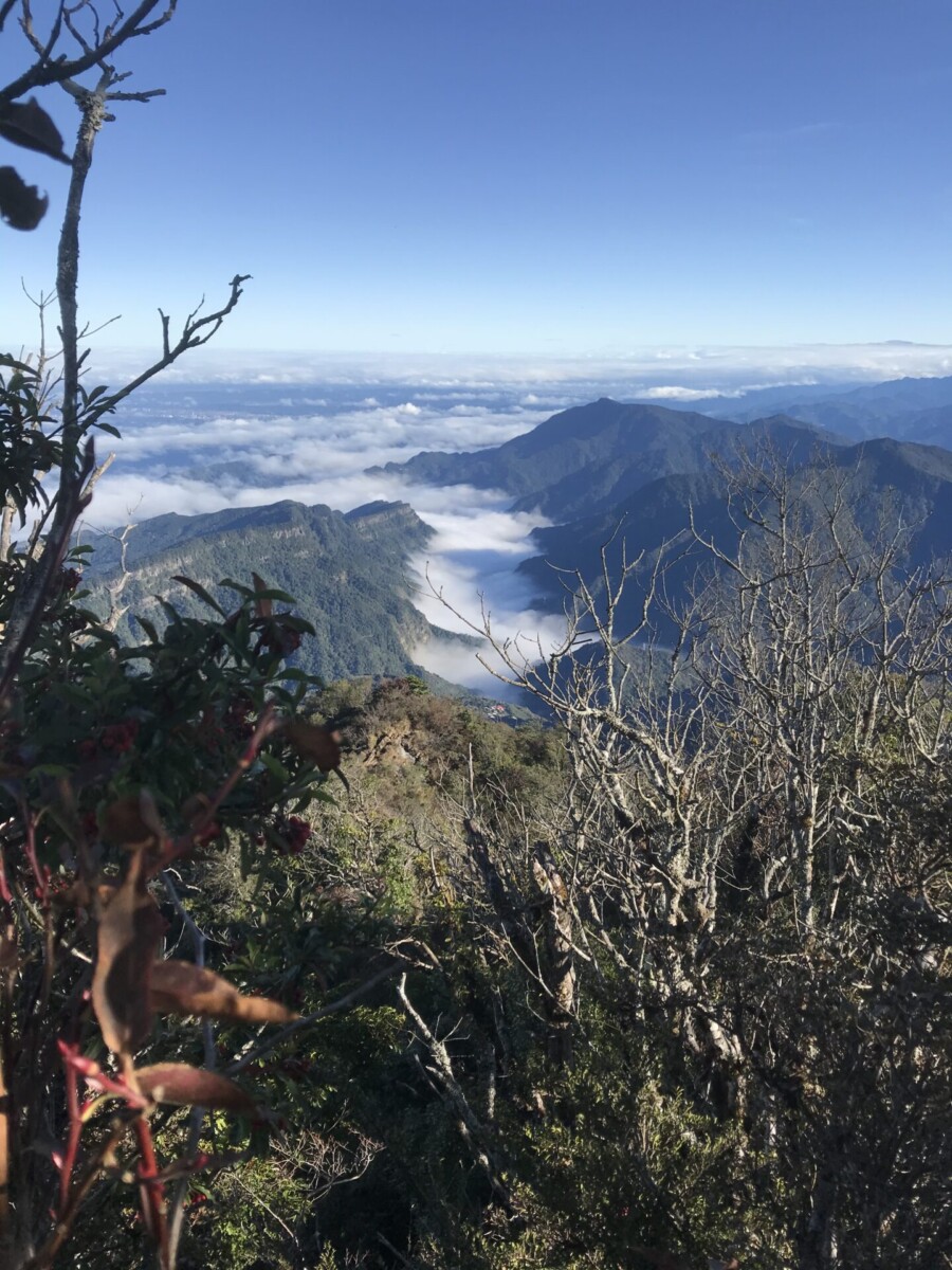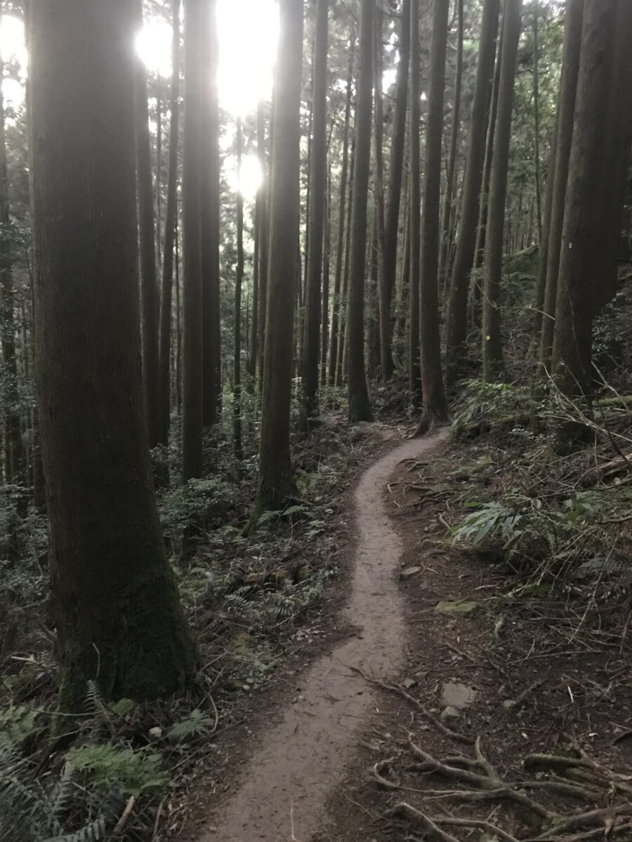 到了加里山三角點之後,接下來大部分的路就是往下,而且有很長的陡下,走到海拔約620公尺的島上,要下降1,580公尺,共7.5公里。下坡要注意安全,拼命剎車,走到都厭世了。
