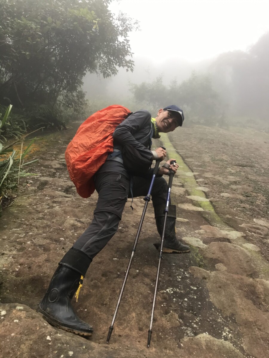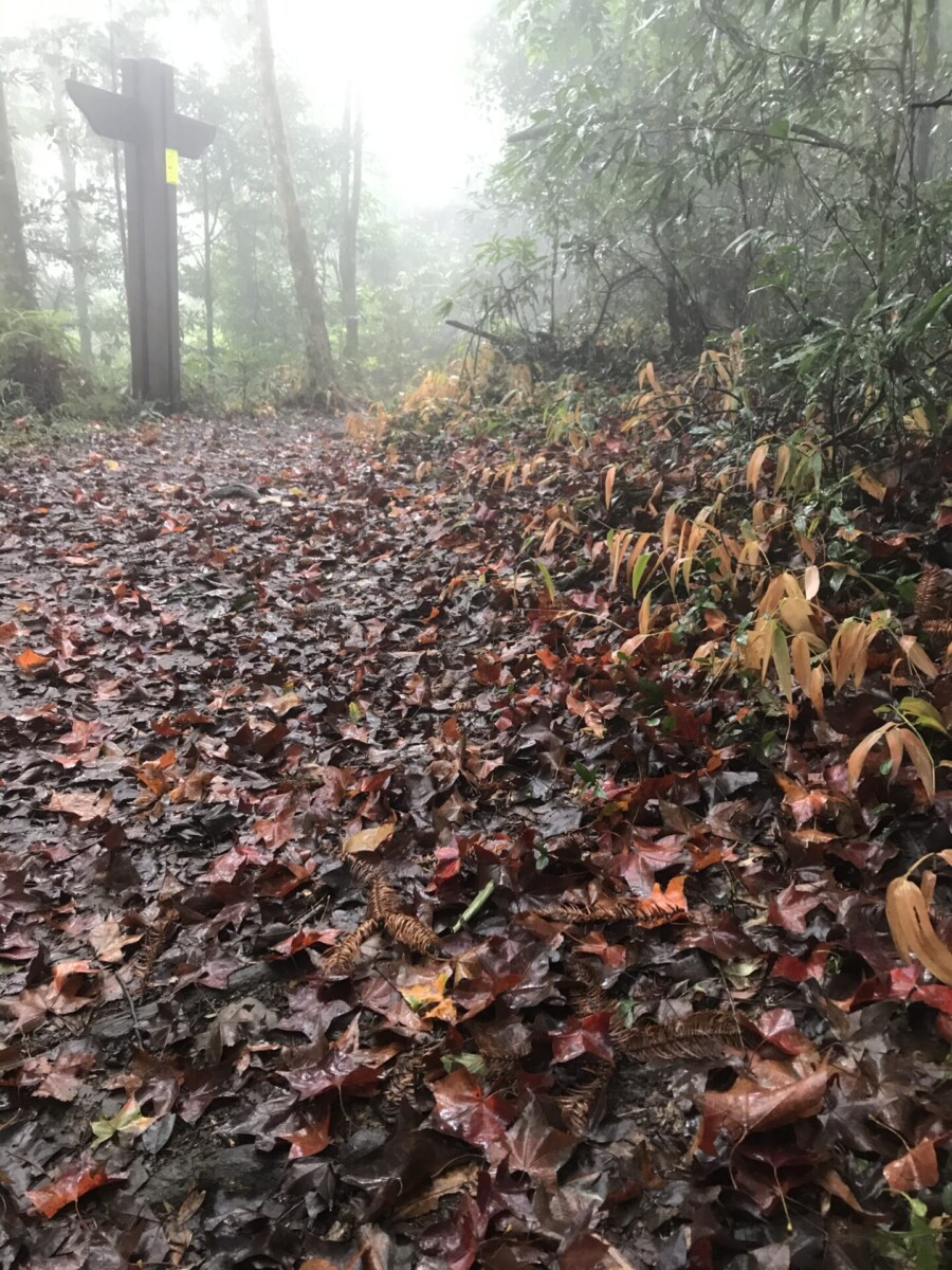 去程沿路上坡不少,而且大部分是泥土山徑,相當溼滑,雨鞋和登山杖不可或缺。