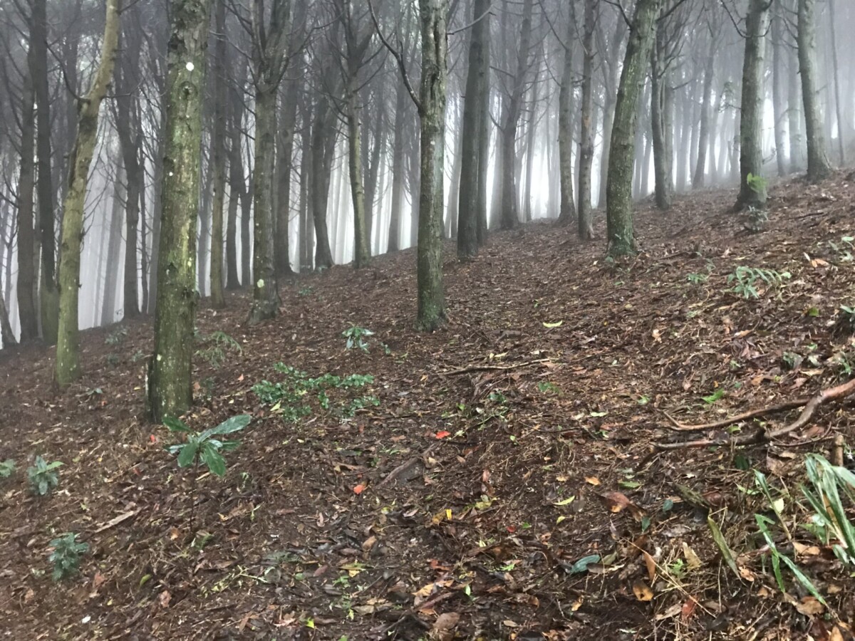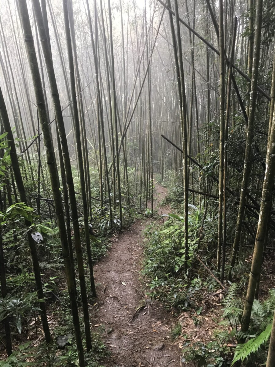 從新竹五峰上坪廣惠宮出發,去走了上坪–觀霧縱走北邊的一小段,28.5公里中的6.5公里。抵達大隘山之後,往回陡下坡再腰繞至竹林禪寺,然後走橫向步道,穿過一線天,最後下至五指山觀音寺回家。