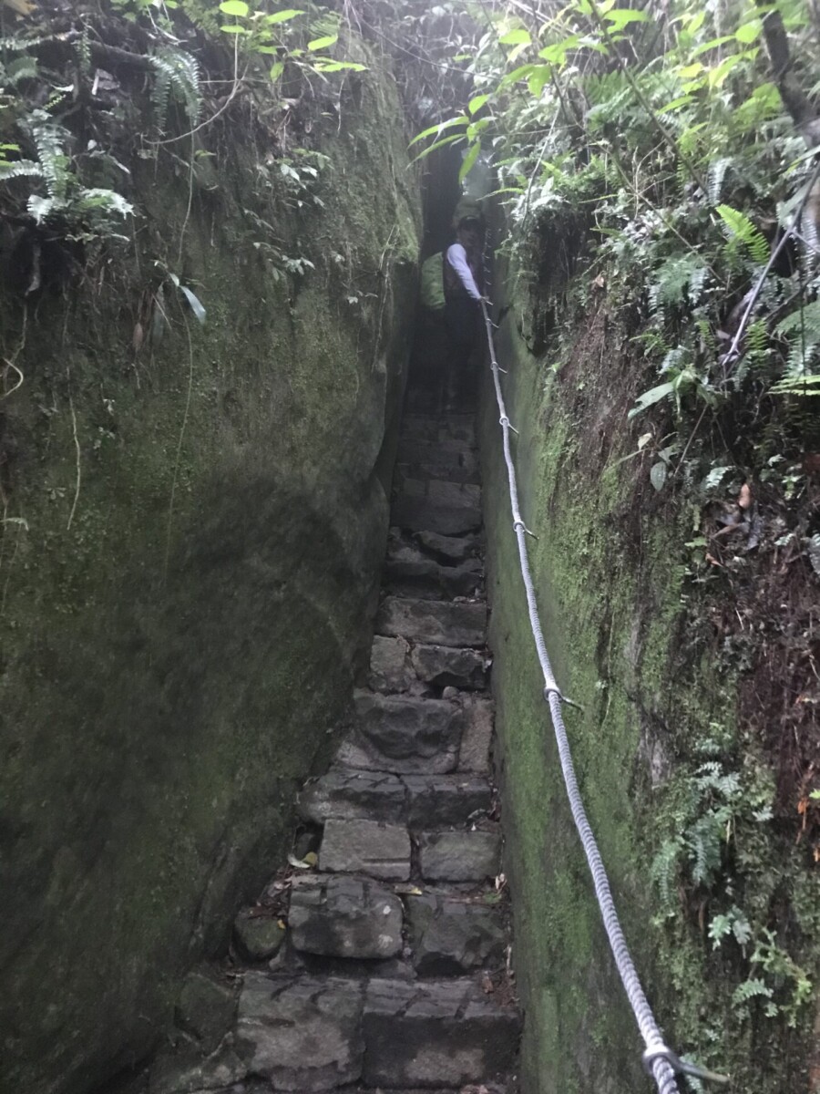 回程的橫向步道,鋪了石塊而且有木棧道,相對平緩好走。一線天的狹小上坡石階,可以小小挑戰一下幽閉恐懼症喔!