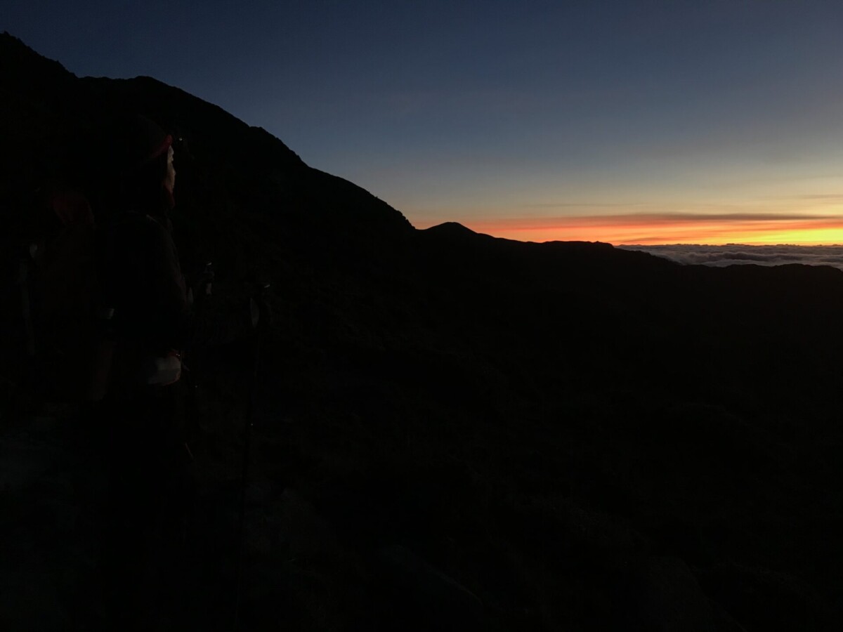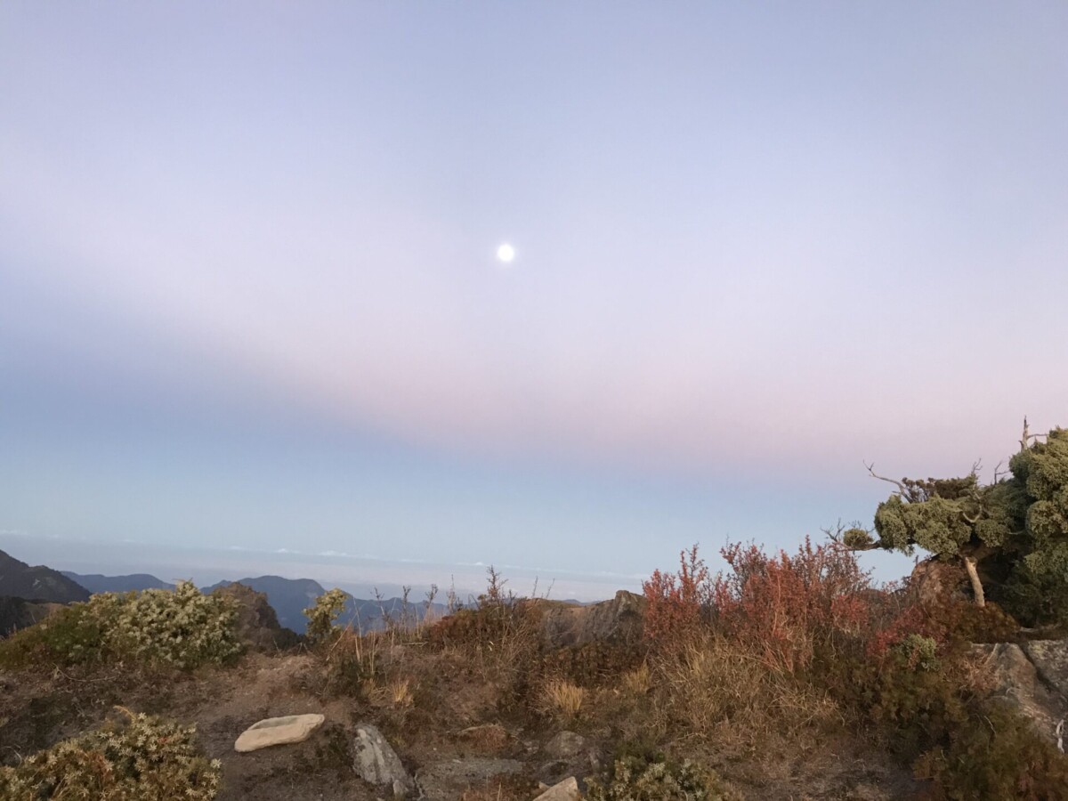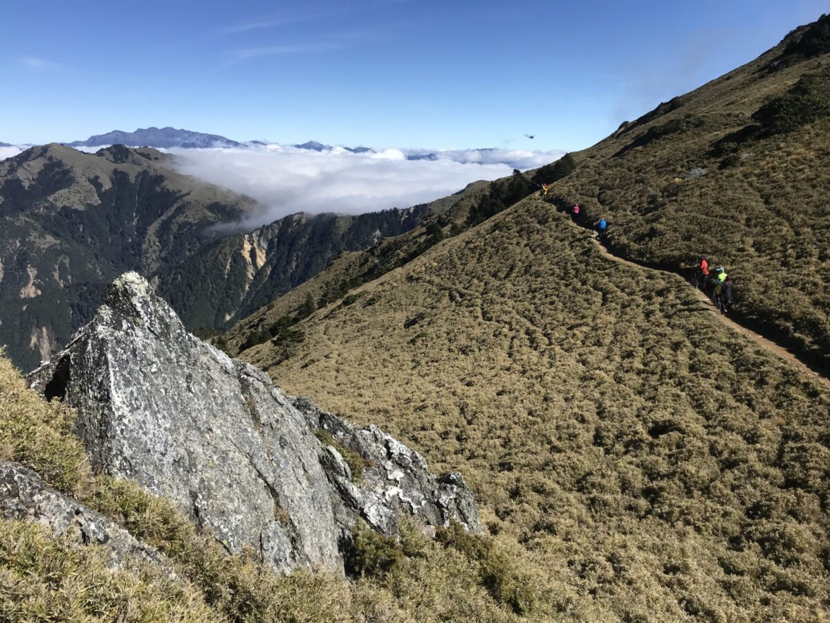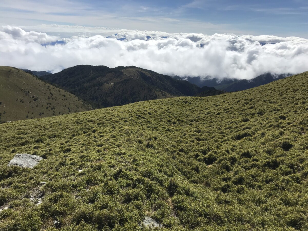 開心的是,在D2的重點日,天氣晴朗,早上欣賞到太平洋上的日出;登頂視野很好,可以看到玉山的聖稜線;傍晚回程,碰上四面八方滙集的超級雲海。