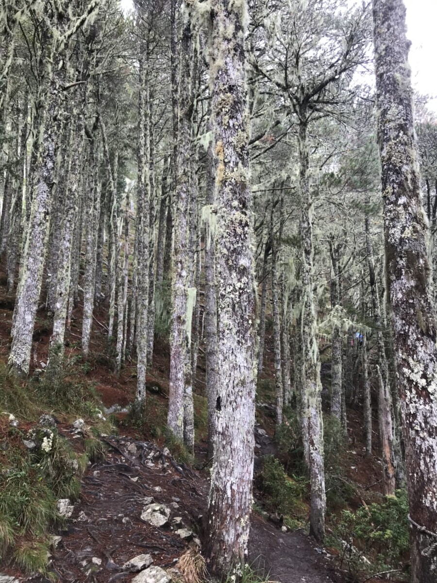 沿途的二葉松林,掛滿玉潔飄逸的菘蘿,非常美。