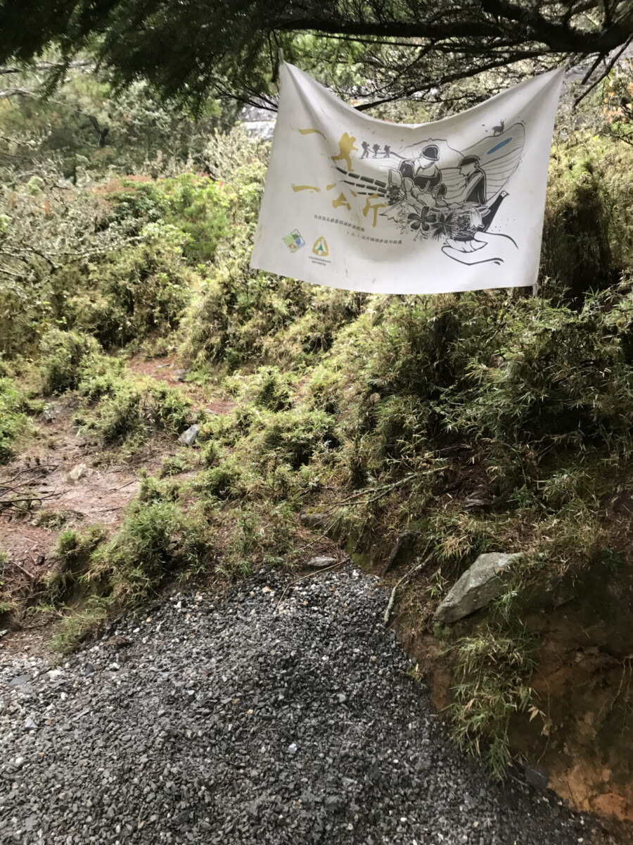 登山步道由於植被的箭竹被踩踏破壞,土壤持續流失,漕化情形嚴重,目前在向陽登山口有活動,只要幫忙揹碎石進山,1至5公斤不等,協助修補,即可得一張明信片及防熊手冊。自忖能力有限,但還是勉力揹了一些,換了一張黃猴貂的明信片。