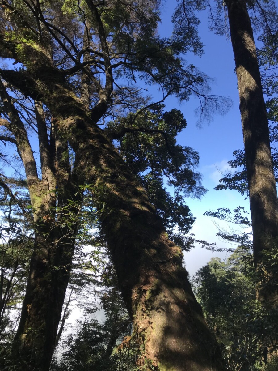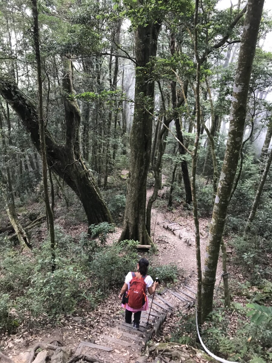 我要說的是,阿桑頭髮已經冒出了不少白髮,腳上趿著一雙極為普通的運動鞋,只拿著一枝登山杖,背袋好像小女生平常揹的,但是她走路的速度,尤其是上坡的時候,真的不是普通的快,而且幾乎是不停下來稍微喘息的,我想應該沒有幾個人能跟上她的腳步。我是拼了命地走,也往往一不小心就落後了5到10公尺,然後再死命的追趕,然後又落後……