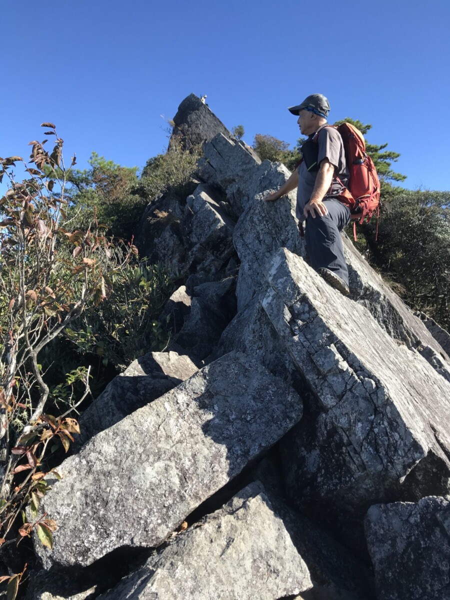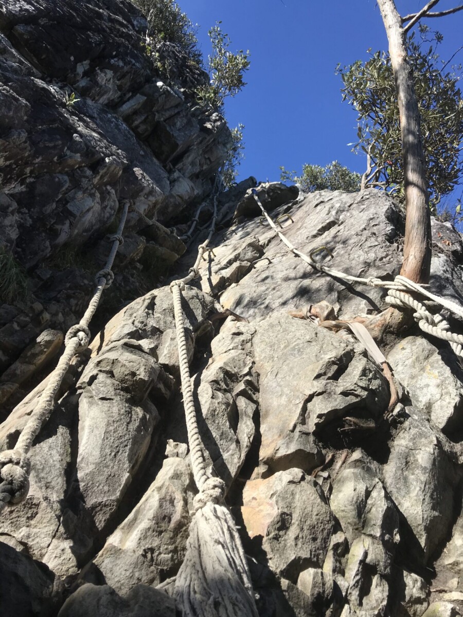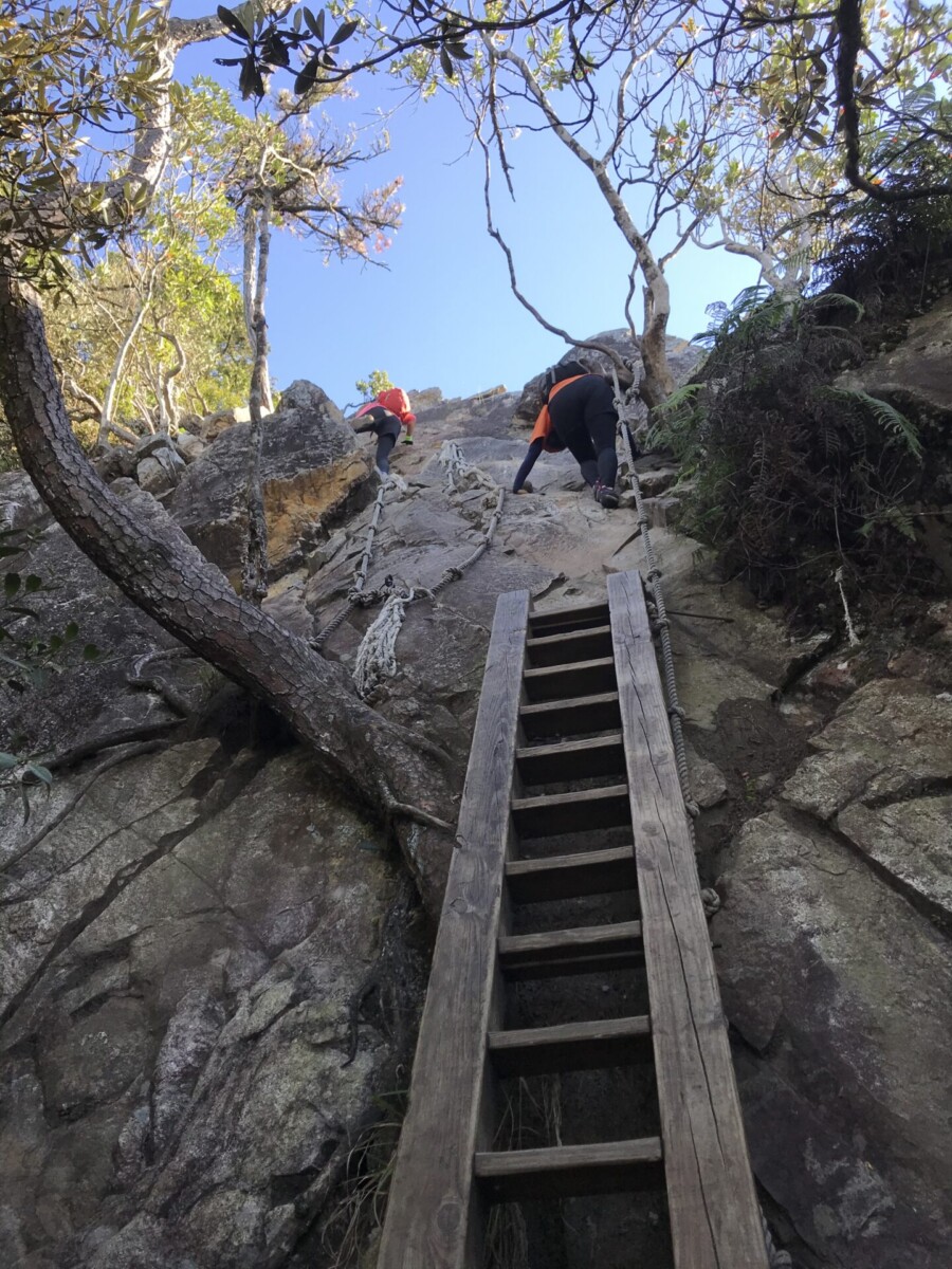 話說鳶嘴山的特色就是攀岩。據說以前曾經摔死人,現在釘了不銹鋼的腳踏,拉繩也變粗了,因此只要按步就班,小心踏點,其實是很安全的。