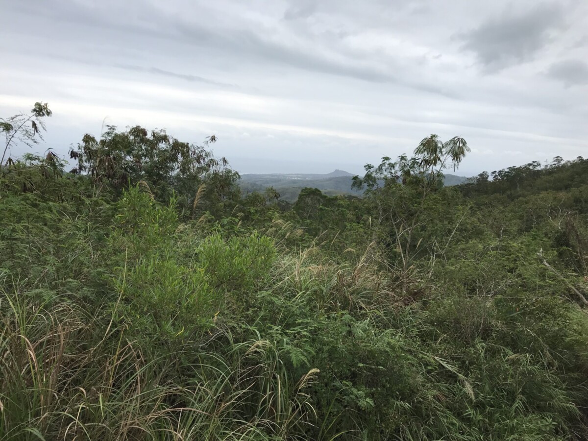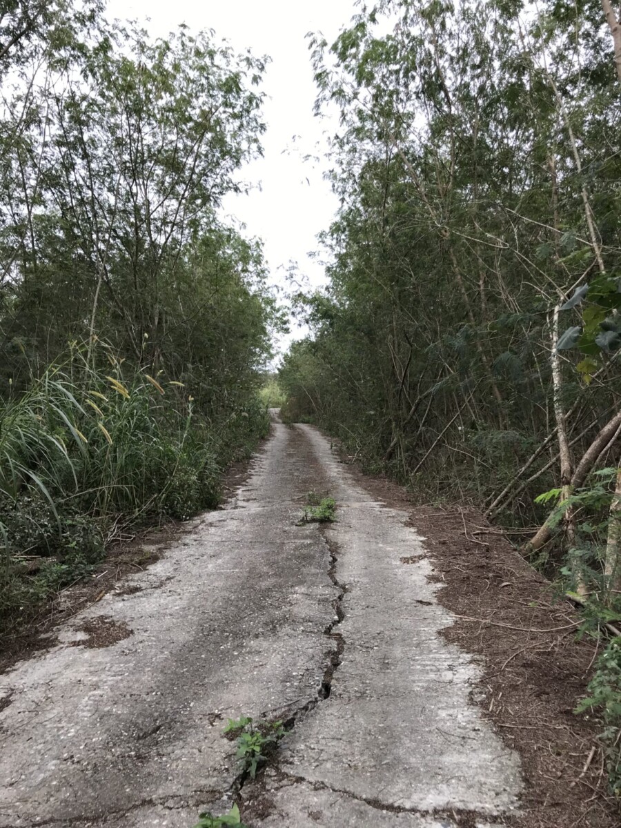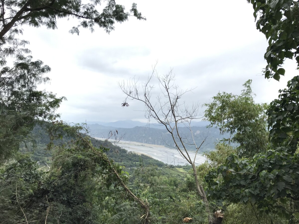 「脫困」之後,我穿過了鐵線的圍籬,鬆了一口氣,往東可以看到太平洋的海,依照地勢判斷,那兒應當是都蘭林場南緣丘陵越嶺的地方了。接著沿圍籬邊的小徑住山下走走走,穿出了果園,就進入了有水泥和柏油鋪地的產業道路了。