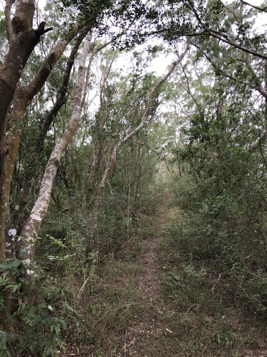 我告訴自己,絶對不可以從稜線下到容易迷路的凹谷。其實在那個地點,這倒是有點多慮了。山谷裏密密長滿了頑強的銀合歡,完全沒有我這個外來物種可以輕易落腳的地方呢!