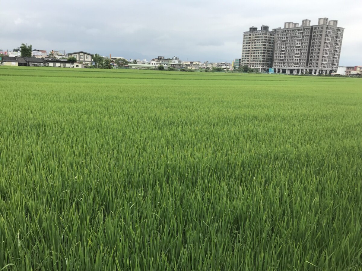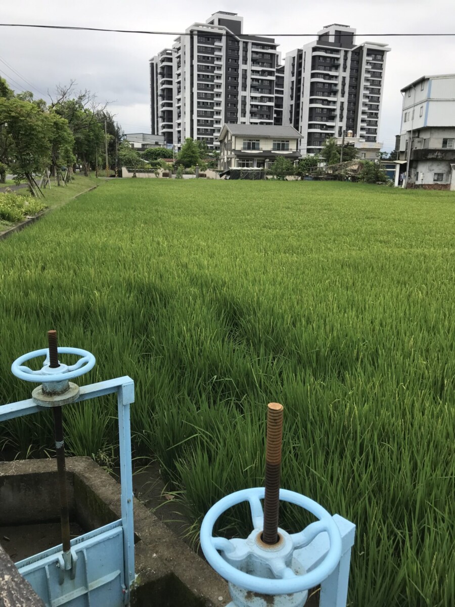 景色:市區道路,偶遇稻田甚熟美。