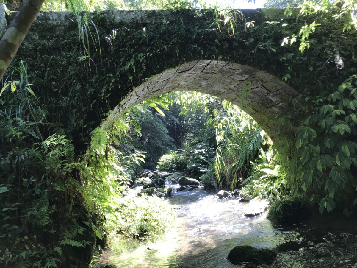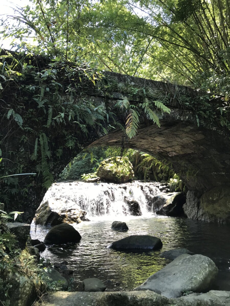 接下來經過一座糯米橋,是客家先民就地取材的石拱橋,用糯米、紅糖、石灰的混合物做黏合劑,現在依舊完如如初。橋石縫長了蕨類,橋石佈滿了青苔,更顯得在歳月考驗之下,老而彌堅的智慧。