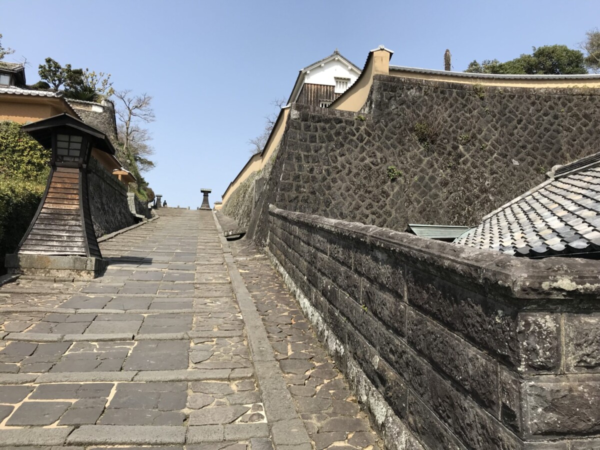 杵築城因為地形的關係,最有名的是,城下町是夾在兩邊地勢較高的武家中間,形成所謂的三明治城下町。