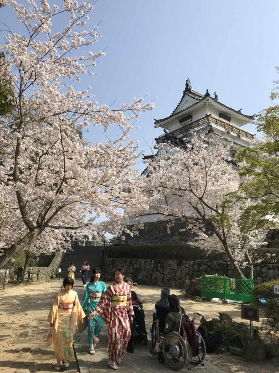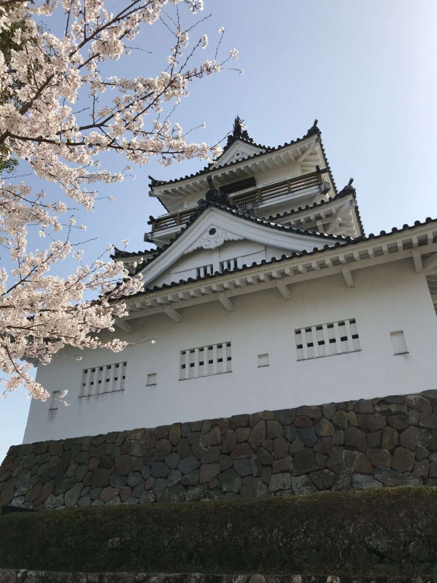 杵築城建在海口小山丘上的天守,規模非常小,但沿路夾道的櫻花在三月底狂開,花姿亂顫,令人驚艷。