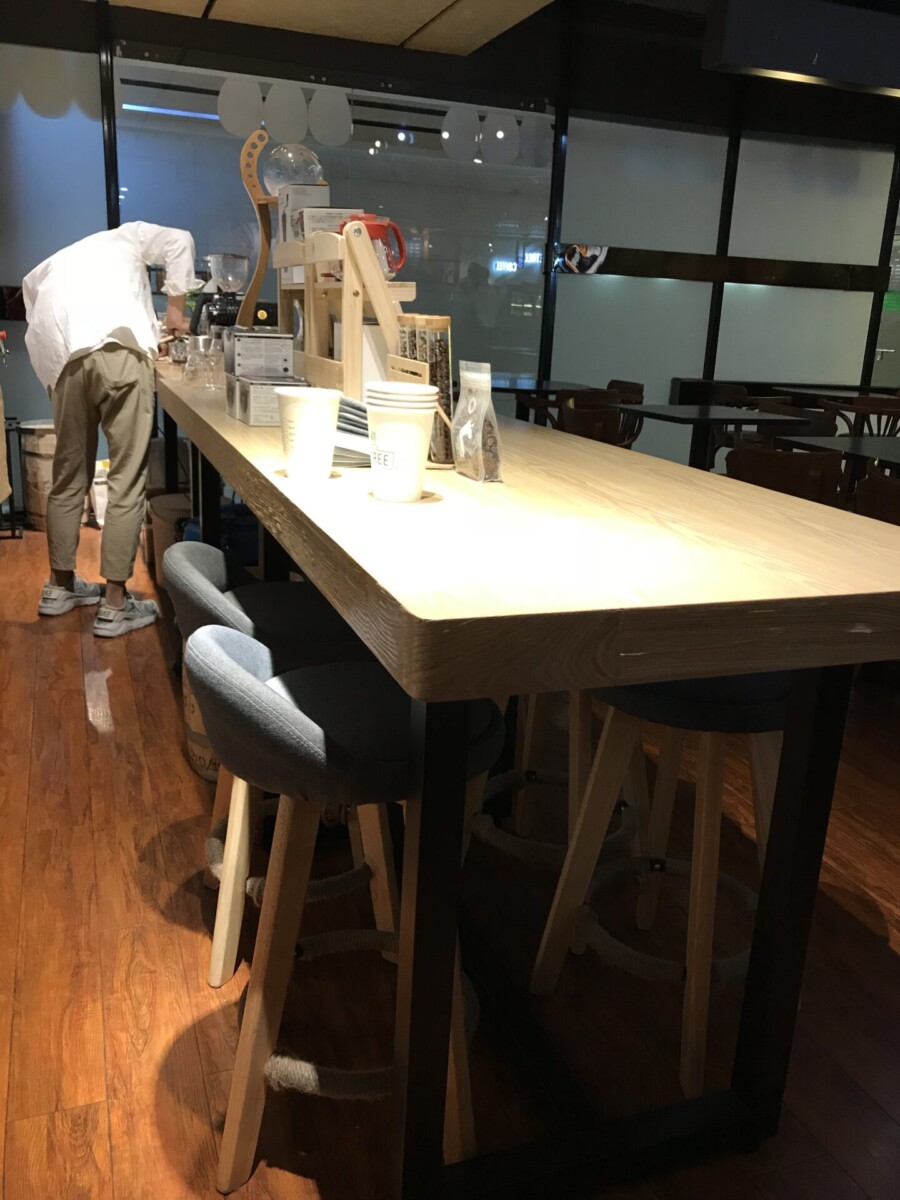我是第一次來,而且看到手沖咖啡的大吧枱空蕩蕩的,實在心𥚃上沒有準備好。還好在那枱子旁邊有一個畸零的位子比較亮,我就選擇坐到那兒,好看點兒書。