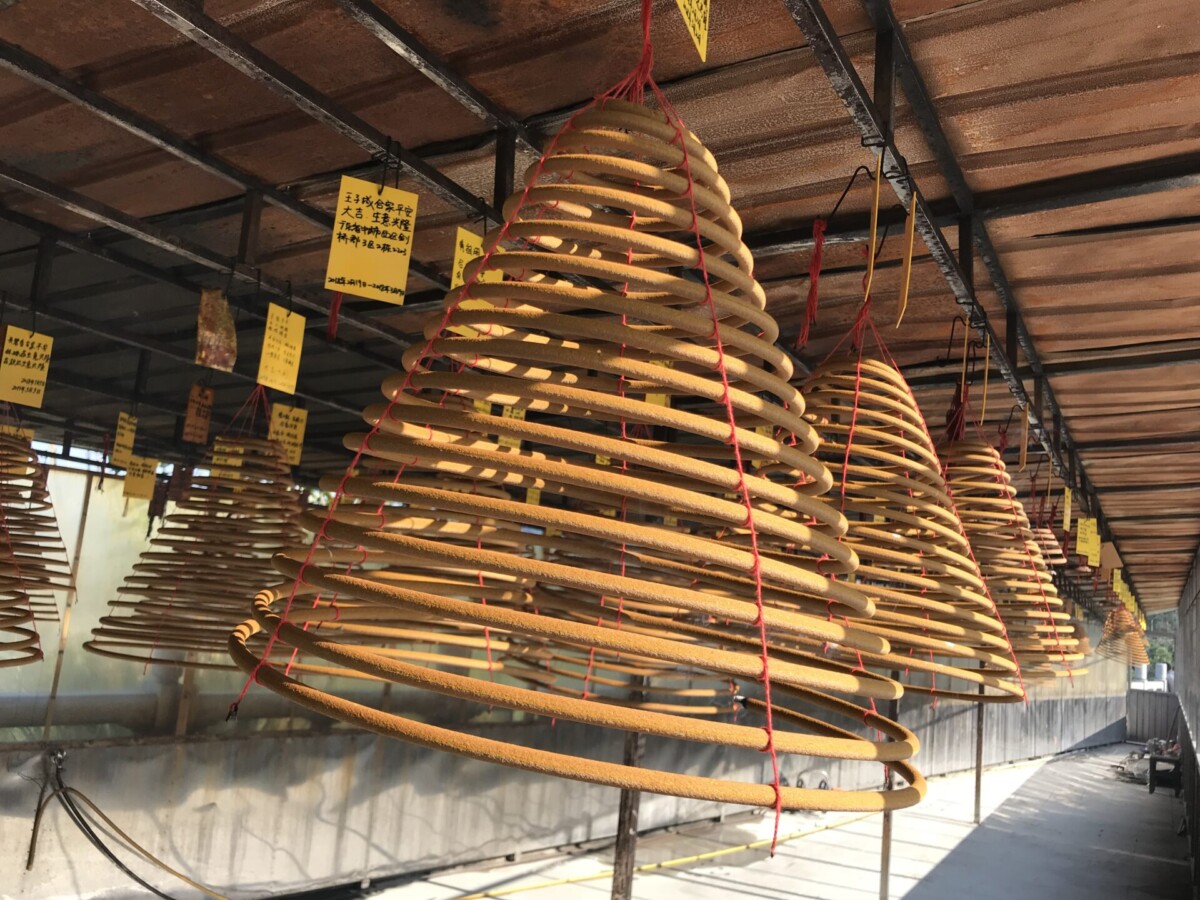 還有一種是點燃祈求迴香的,掛在防雨棚內,依大小計價,那就顯得比較慎重了。