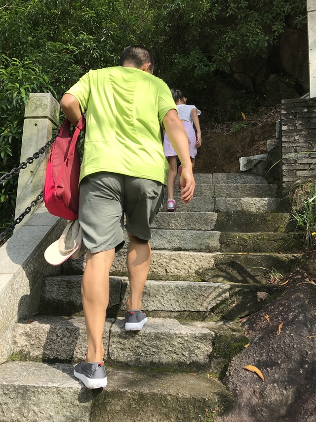 我往上走了幾步,也聽到了有人在更上面的石階上,責怪小女孩平常都不來爬山,所以現在才爬不動。遠遠看上去,應該是小女孩的爸爸。