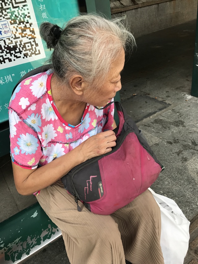 她看起來真的好虛弱,我十分不明白,她的家人為何任由她一個人出來走動。她似乎連呼吸都感到困難,佝著背,一直不斷辛苦地等待下一口氣上來。