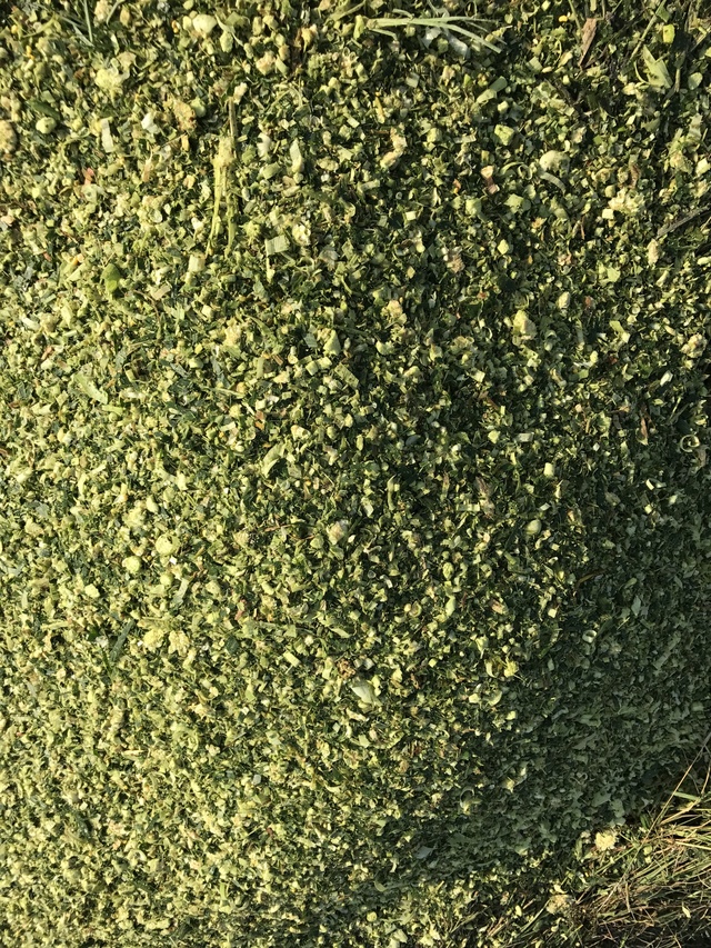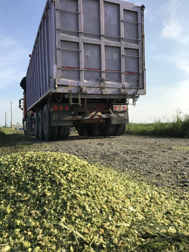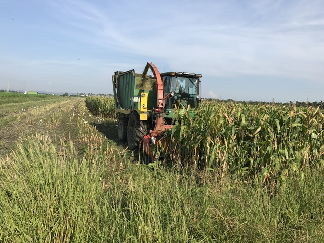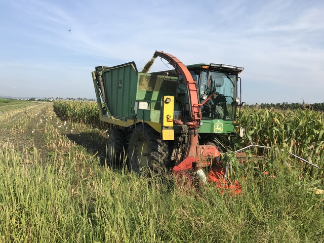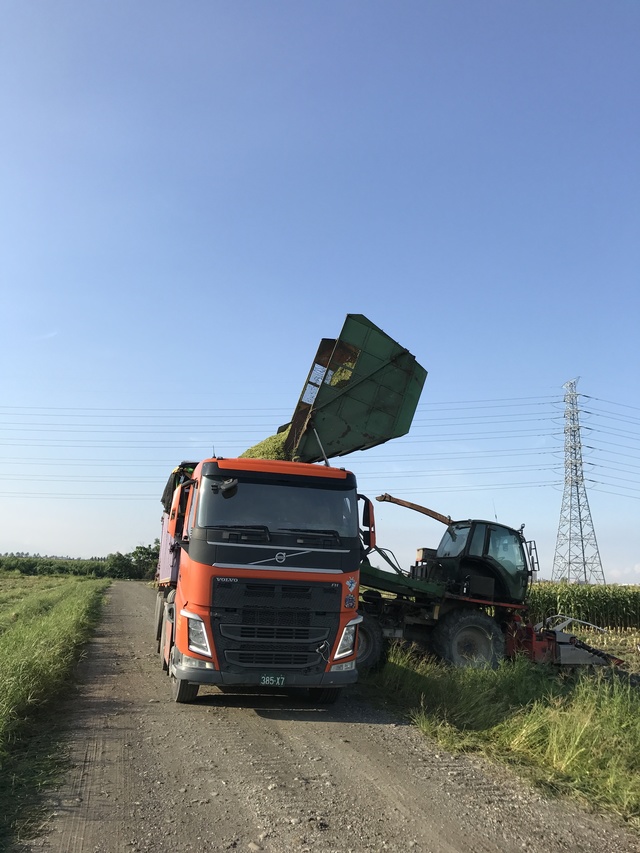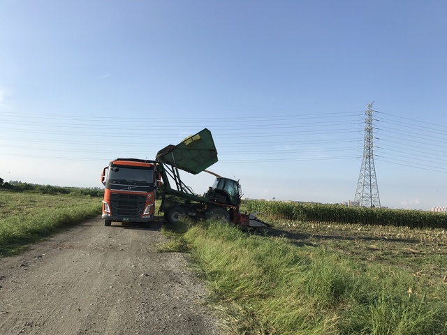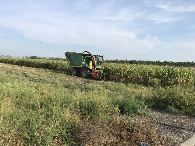 所謂的青割玉米,是指種下的玉米不以採收玉米粒為主要目的,而是在結穂之後,整株連著玉米,用機器採收切碎,然後直接運到酪牛場當作是乳牛的飼料。