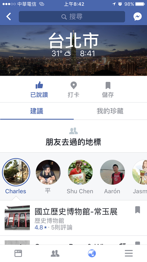 Facebook 會主動提醒您,您的朋友曾經到過這個城市的什麼地標,也因此我們就可以輕輕鬆鬆地掌握到了他們的行蹤了。