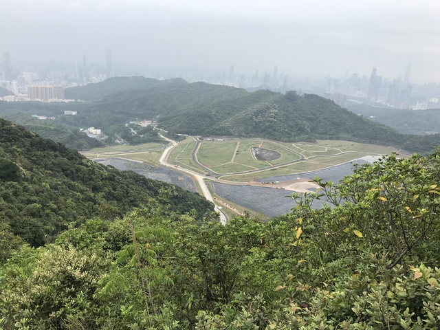 在途中,我就聞到了陣陣的臭味,心想是農戶的養鷄場之類的。到了山頂的稜線向南眺望,看到鋪滿塑膠布的巨大山谷,經過向銀湖公園巡守員查證,原來是深圳的超級垃圾掩埋場。場裏面接著很多管子,是為了收集垃圾發酵之後產生的沼氣,也就是甲烷,一種有臭味可燃的天然氣。