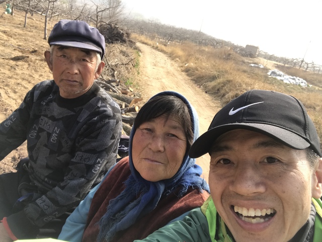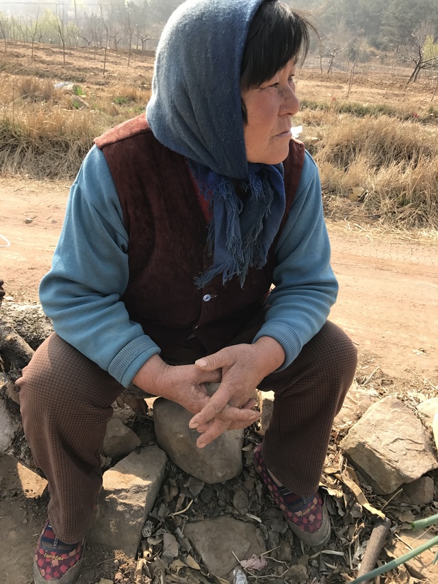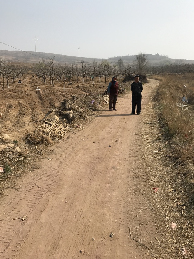 孫奶奶坐在蘋果園旁的地上休息,遠遠看到了我,就開心地說,你來了。我問她,最近好嗎?她説,前陣子天氣太乾旱,灑水灌溉蘋果園的時候,濕透了褲子,脫下來擰乾,流汗的身體因此著了涼。她感嘆到,已經好久沒有生病了。我安慰她,感冒是傳染的。