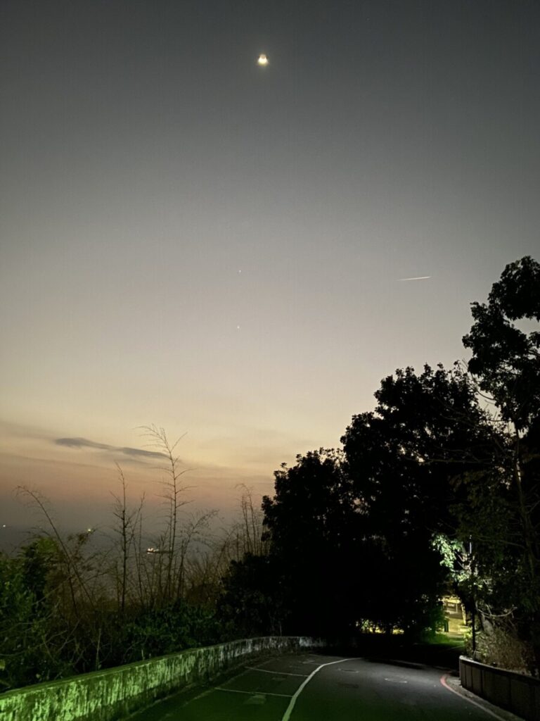 新月·金星·木星,在傍晚時分,於西邊的低空,由上而下,連成一條線,垂釣著台灣海峽。氣象台已經在兩天前發佈了這個奇景,今天授我以漁,我在高雄西子灣,想著余光中一彎淺淺的鄉愁。