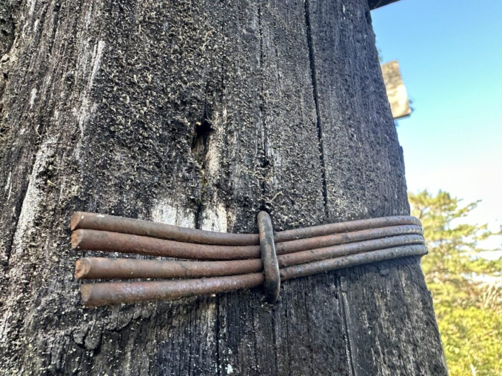 很幸運在易西拉吊橋旁,廢棄不用的舊橋,當作古蹟現況保存,就是當時日本人用八番線(8號鐵線)幾根紥成一束去拉起來的。