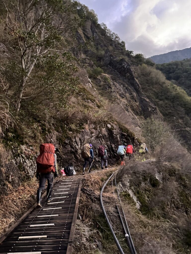 在托馬斯和大分之間,碰到一組受國家公園委託由東往西進行路況改善的布農族人,「Uninang (謝謝你)」是我們共同的語言。他們修好了台灣黑熊研究室(研究人員不用時開放給山友做為山屋,是為大分山屋,位於大分駐在所遺址)的供水,讓我們用太陽能洗了兩天的熱水澡,這也是我爬了一百多座百岳,第一次有澡可洗,而且是熱水澡。吊詭的是,八通關古道的縱走,我們不攀登任何百岳的三角點喔!