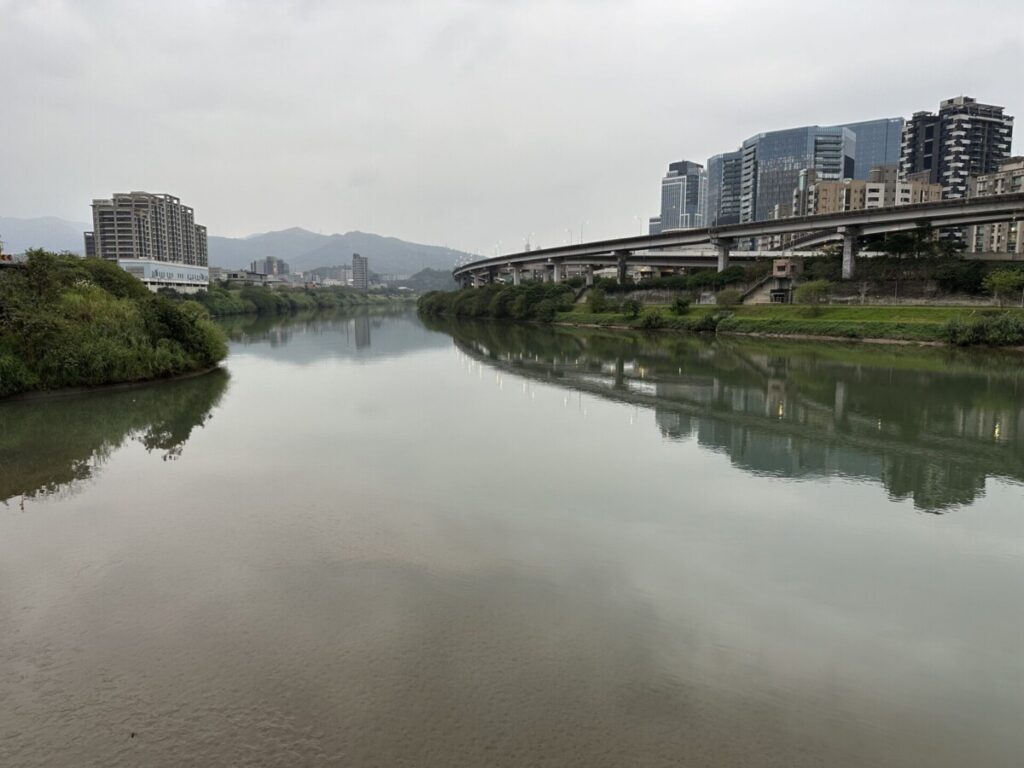 基隆河的堤外防汛道路很好走,河濱公園依然修剪得十分整齊、乾淨。水質在過了內溝溪之後,明顯變得更髒,心想這下水道接管率超過七成的台灣第一大城,還有很多事要去做,超越藍白綠。