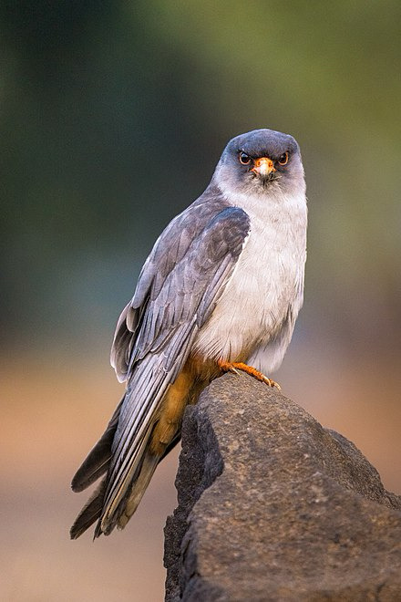 The Amur falcon is a slim, dove-sized little raptor, slightly bigger than an American kestrel. The males are gray—darker above, paler below, with elegantly contrasting white wing linings and a splash of bright rufous on the thighs and undertail coverts. The females and juveniles are very different, their white undersides barred with black and lightly washed with buff on the chest, the face distinctly “mustached” after the fashion of most falcons. All ages and sexes have bright carmine legs and feet, and the Amur was long lumped with the very similar red-footed falcon of western and central Eurasia. Amur falcons, however, breed in woody margins and the edges of savannahs from eastern China and North Korea to parts of Siberia and Mongolia-an area one-third the size of the contiguous United States, and from which they make one of the longest migrations of any raptor in the world, some 8,000 miles one way to southern Africa.