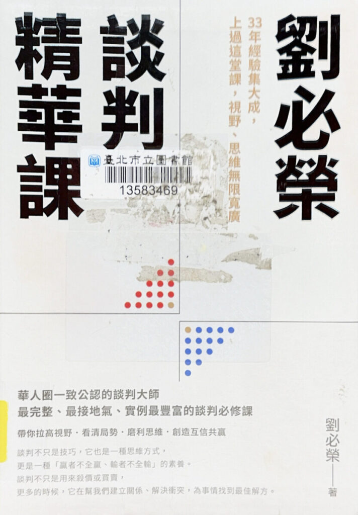 『……談判不只是技巧,它也是一種思維方式,更是一種「贏者不全贏,輸者不全輸」的素養。因為談判不只是用來殺價或買賣,更多的時候,它是在幫我們解決衝突。……』*