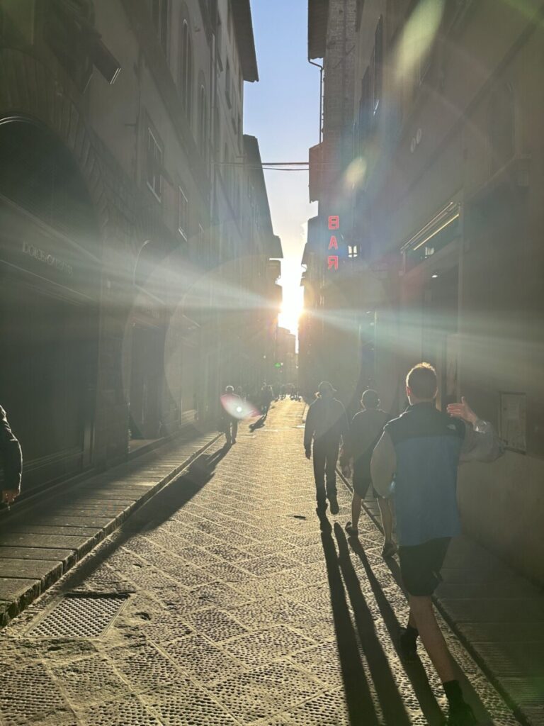 P.S. 相片為義大利佛羅倫斯穿過古巷弄的夕陽,看來大家背光的身影,都完全不急呢!