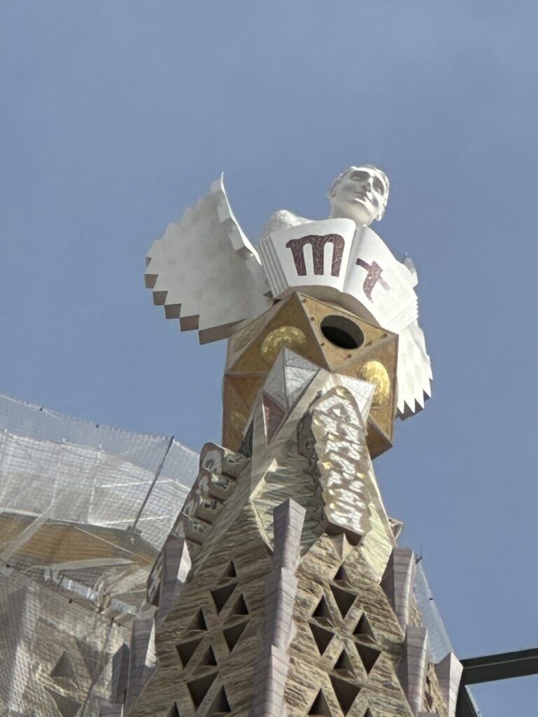 馬太高塔是長了翅膀的天使樣貌,感覺馬太福音 13:49的內容很合適,抄錄於下供大家參考: