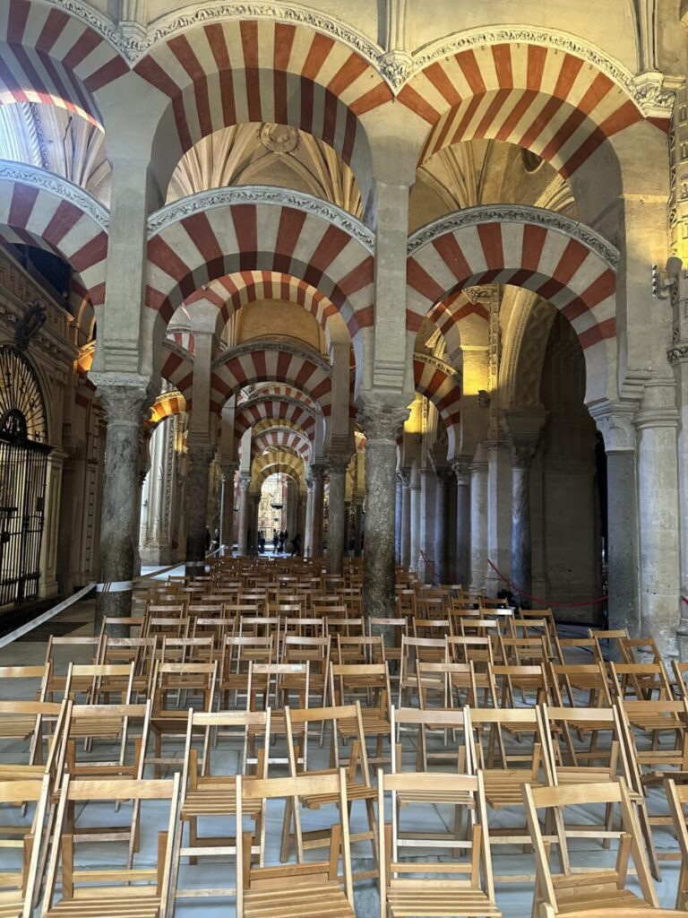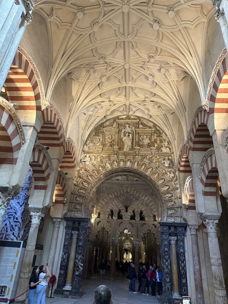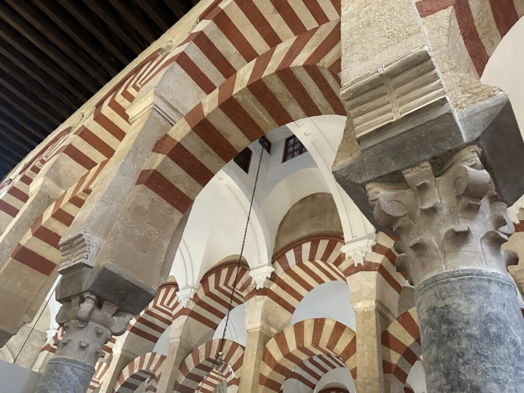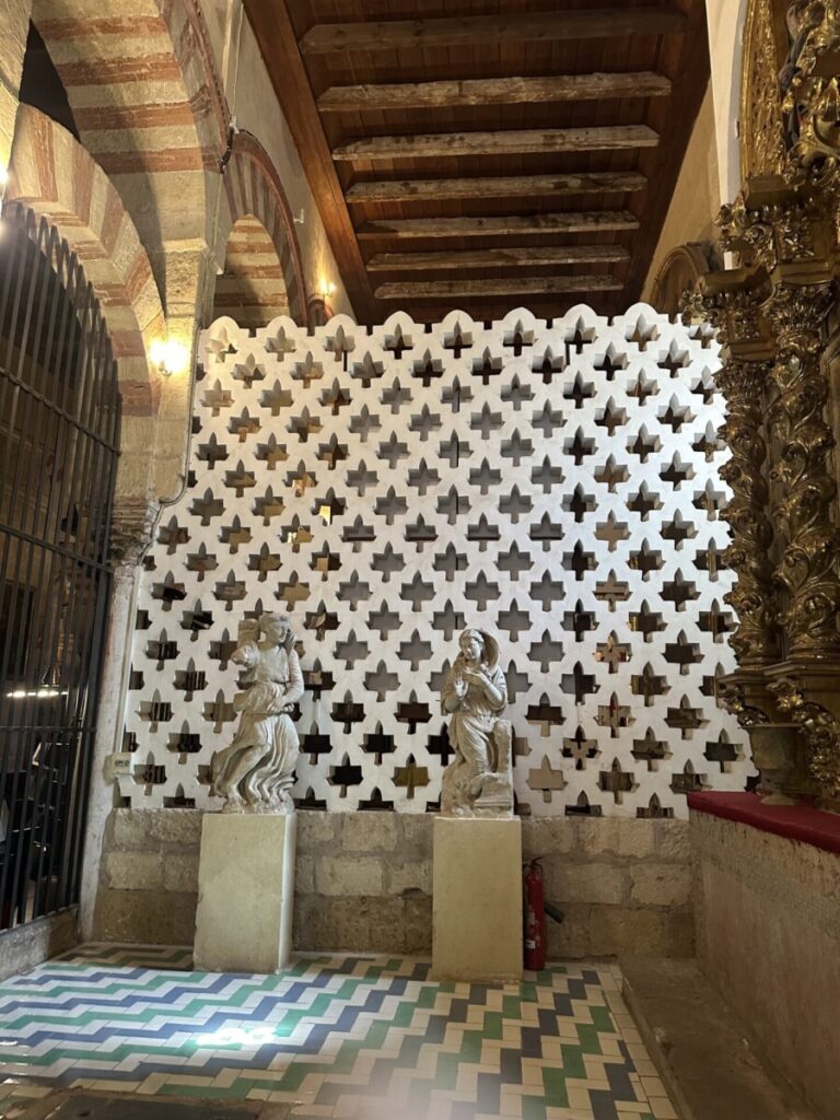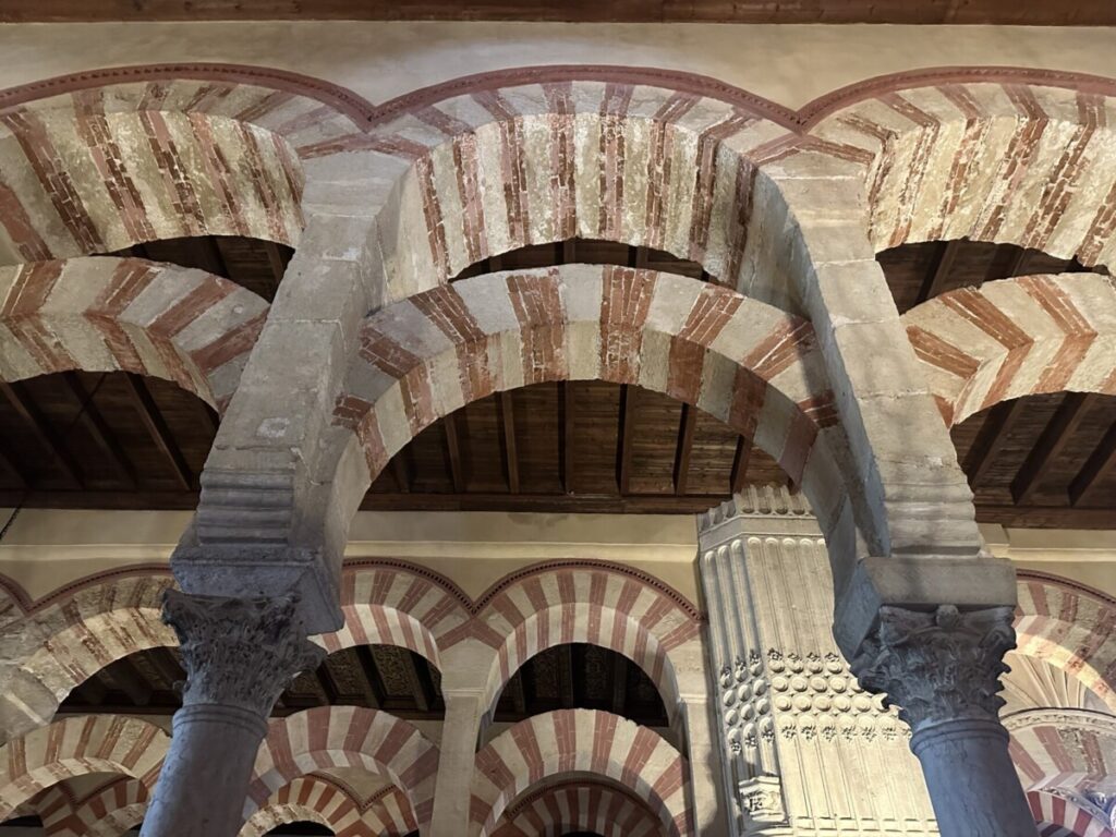 清真寺的早期建築,雕樑畫棟,展現回教無比低調奢華的精美。晚期的拱門,則直接用油漆刷出石塊的樣子,足見回教國力逐漸的衰頹。而在基督徒收復之後,清真寺用來供大量信眾進入祈禱並區分男女的連續大拱門,就大都被封住了。