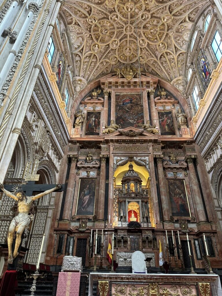 西元1238年,基督徒收復哥多華,清真寺改名為羅馬主教座堂。西元1523年,則進一步直接在原清真寺的中心,修築了文藝復興風格的聖殿。