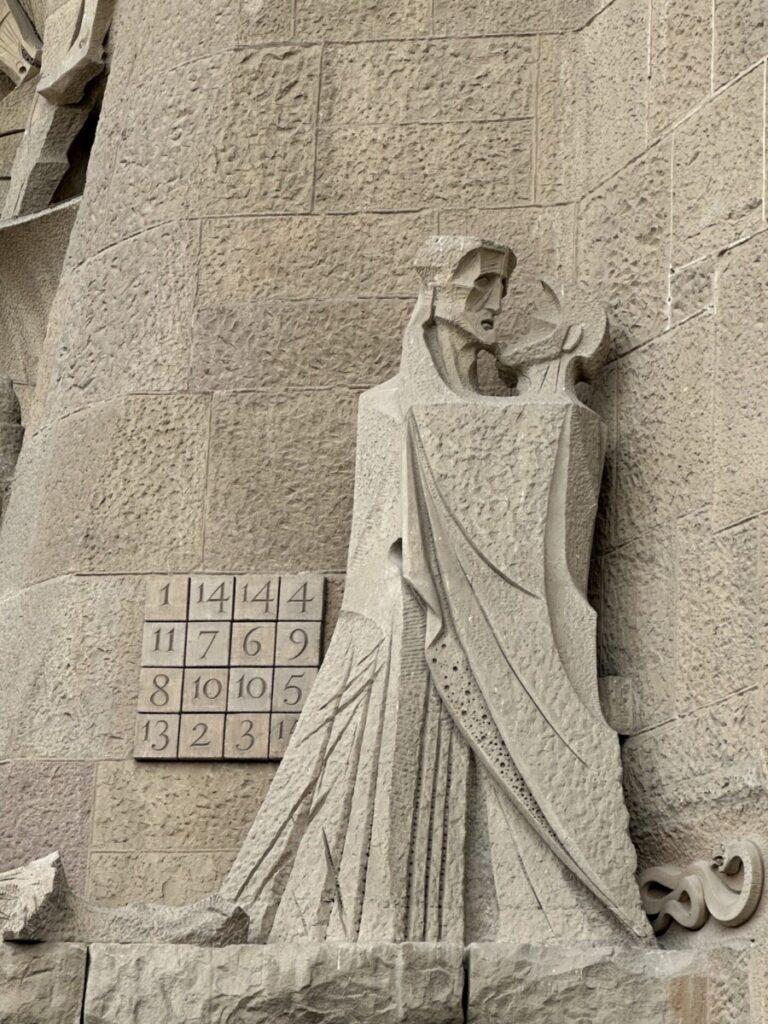 受難立面上刻了一個方陣,不管橫向、直向、斜角,數字加起來都是33 ,代表耶穌受難的年紀。數字產生的「巧合」,更添神話魔幻的魅力: