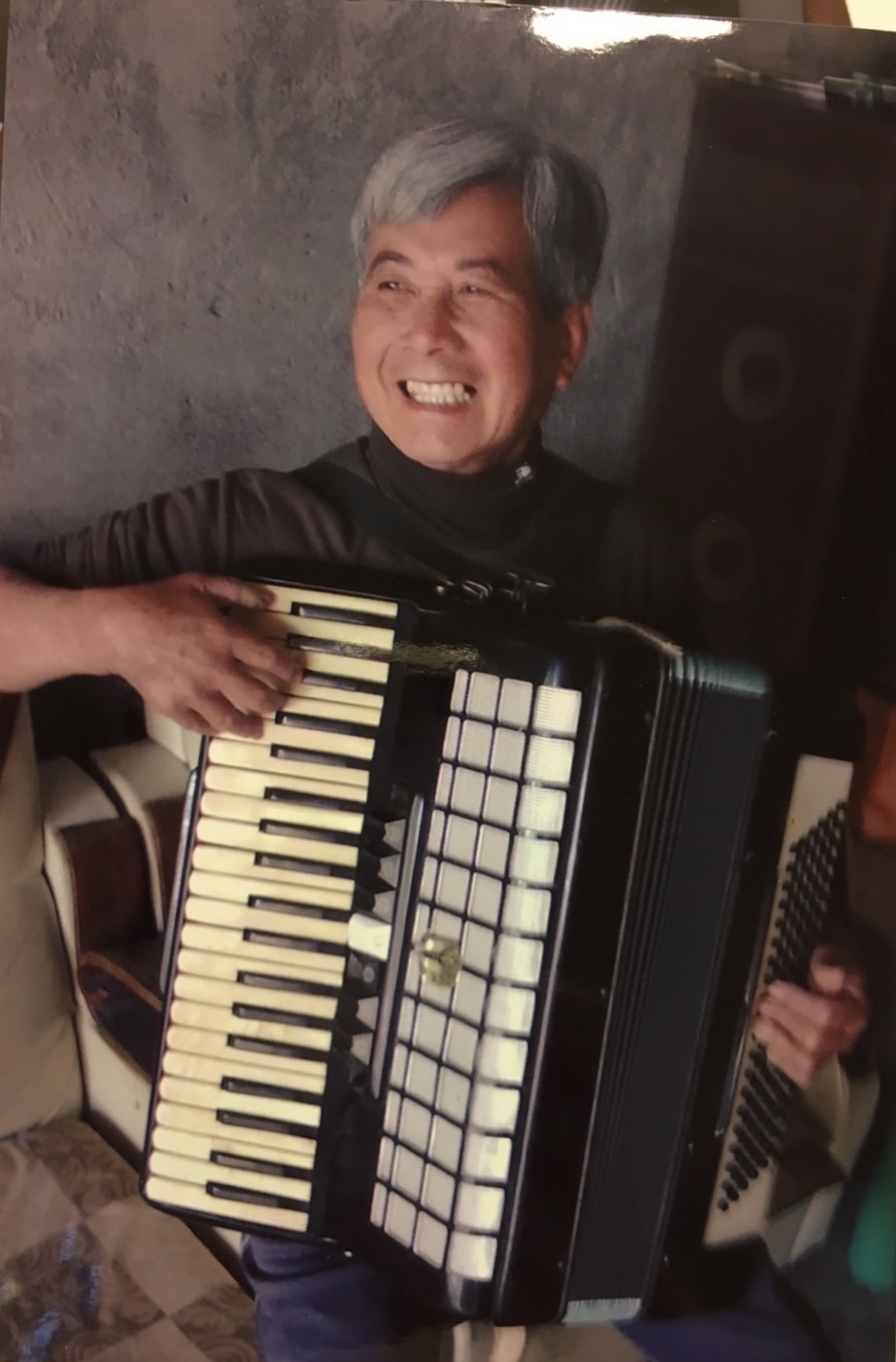 場景是有一批人,背對著我,站在一大排水龍頭水槽前,微彎著腰洗滌。上身穿的是粉紅色或紅色的鮮艷衣服,下半身則是類似牛仔的淺藍綠色粗料做的褲子,繫了皮帶。屏東爸悠閒地向我緩緩走來,穿著淺咖啡色短衣和人造纖維的深藍運動褲,腳上趿著舒適的皮面涼鞋,有鐵扣那種。我想有那麼多人可以陪伴他,心中感到一陣欣慰,就脫口而出:「訝真好欸哪。」(客語:這真好啊)。屏東爸沒有說什麼,只對我露出一抹淺淺的微笑,就像他平常謙虛恬適不願麻煩別人的樣子。