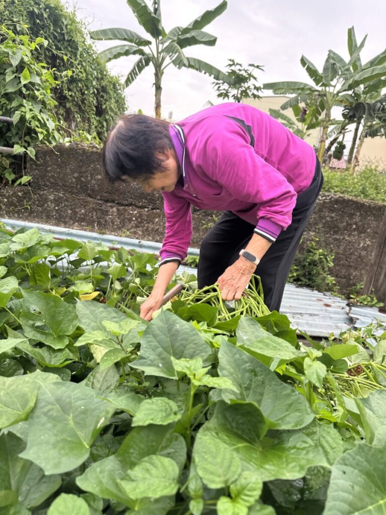 離去之前,我們還摘了很多內埔阿姨在房子旁的畸零地種的地瓜葉。長得真好,葉子比手掌還大,摘起來感覺非常嬌嫩,燙一燙應該很好吃。
