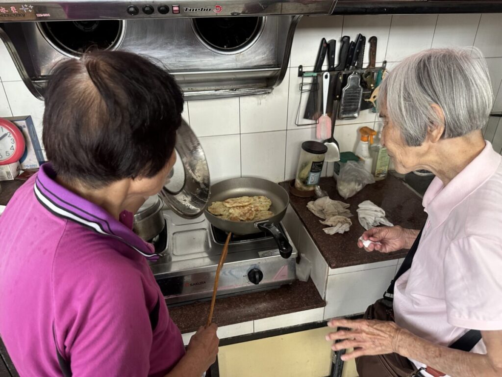 內埔阿姨煎了很多蒲餅,向屏東媽媽展示一個超好用的大炒鍋。